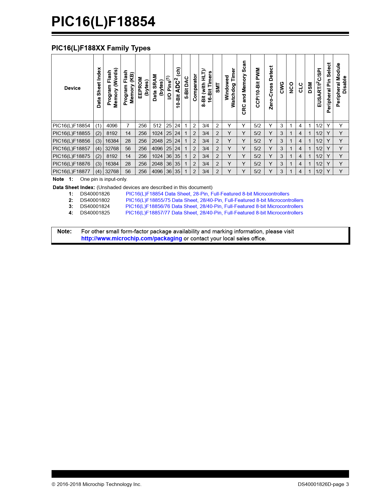 DS40001826 PIC16(L)F18854 Data Sheet, 28-Pin, Full-Featured 8-bit Microcontrollers