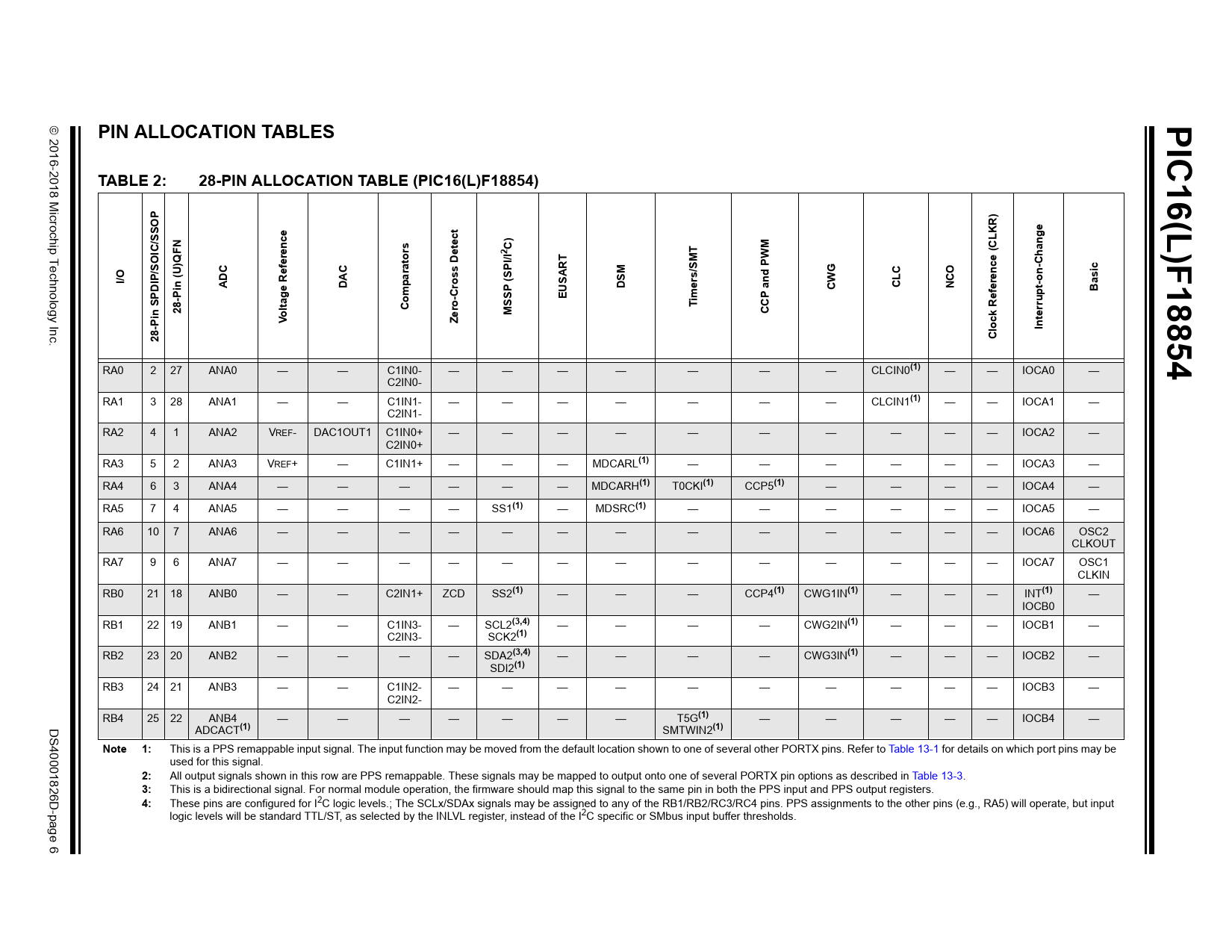 TABLE 2: 28-PIN ALLOCATION TABLE (PIC16(L)F18854) P O S KR) S ct ge nce s te C) an