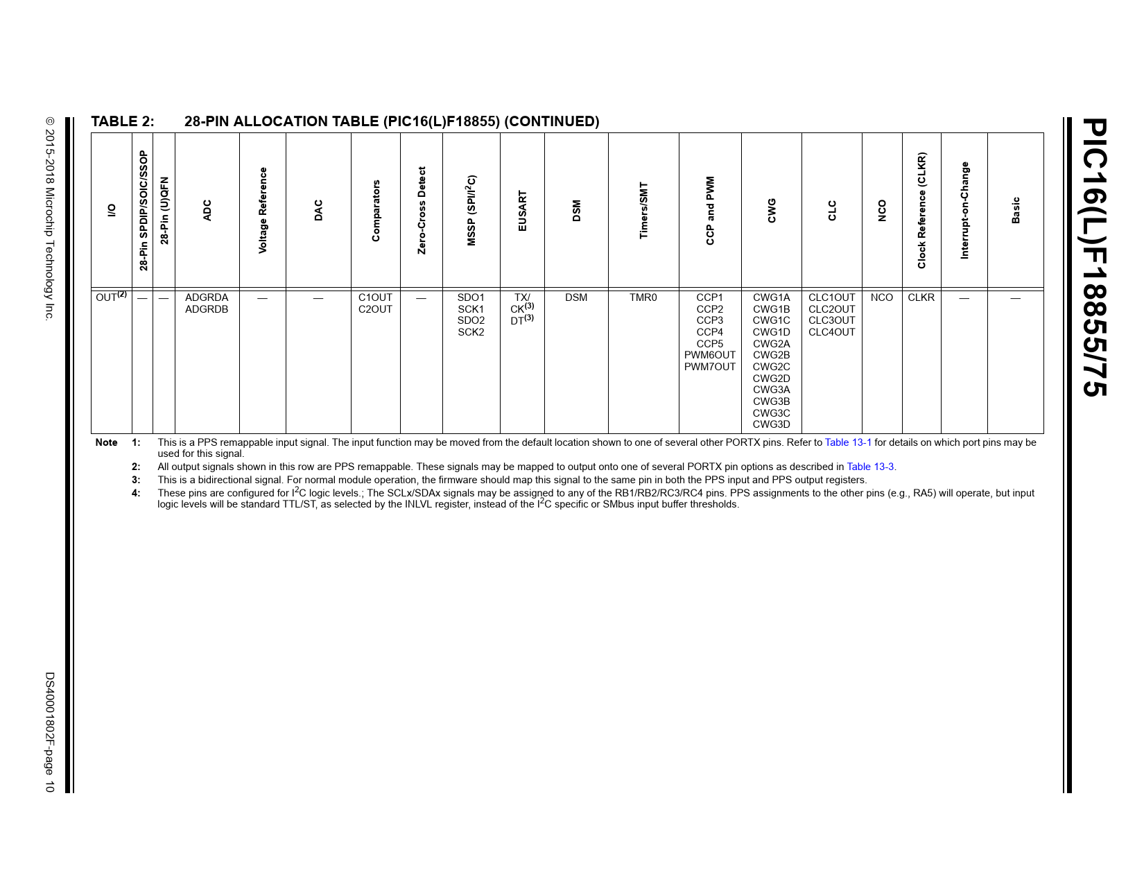 | Pages / Page | 674 / 10 — PIC16(L)F18855/75. TABLE 2:. 28-PIN ALLOCATION TABLE (PIC16(L)F18855) … |