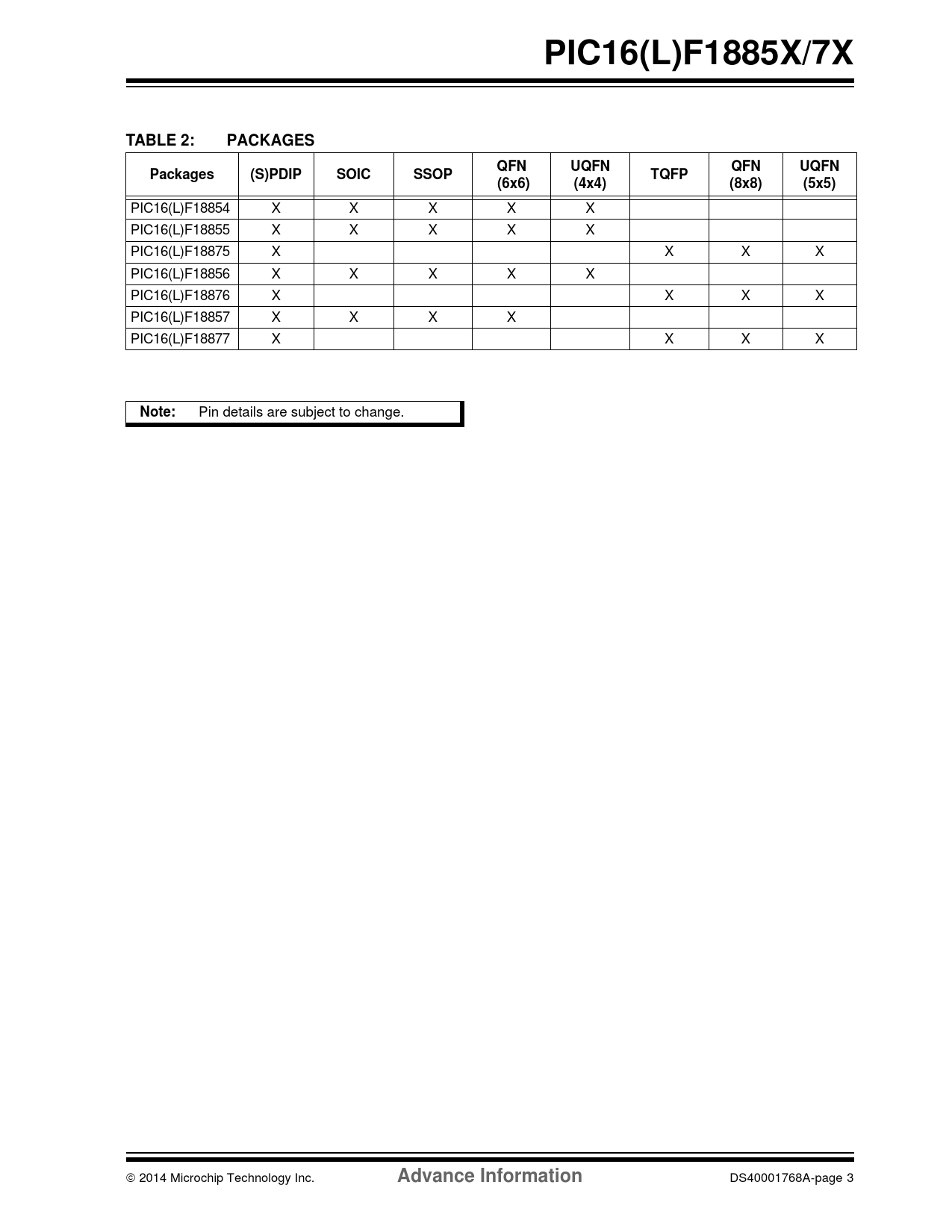 (5x5) X X X X X X X X X Pin details are subject to change.  2014 Microchip Technology Inc. Advance Information DS40001768A-page 3