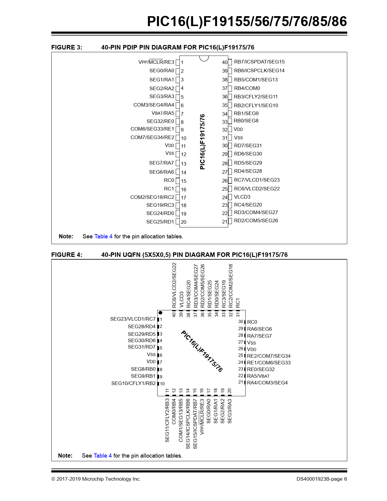 | Pages / Page | 754 / 6 — PIC16(L)F19155/56/75/76/85/86. FIGURE 3:. 40-PIN PDIP PIN DIAGRAM FOR … |