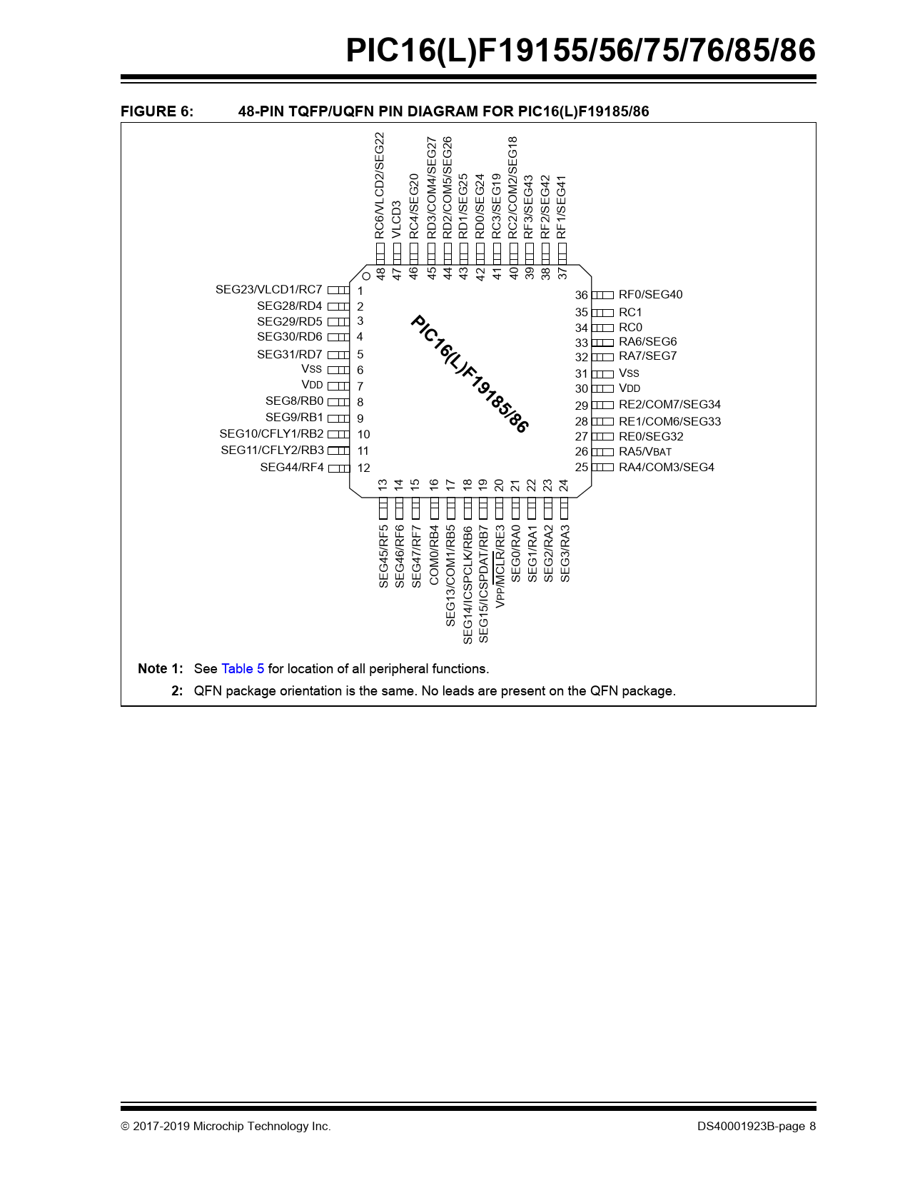 | Pages / Page | 754 / 8 — PIC16(L)F19155/56/75/76/85/86. FIGURE 6:. 48-PIN TQFP/UQFN PIN DIAGRAM … |