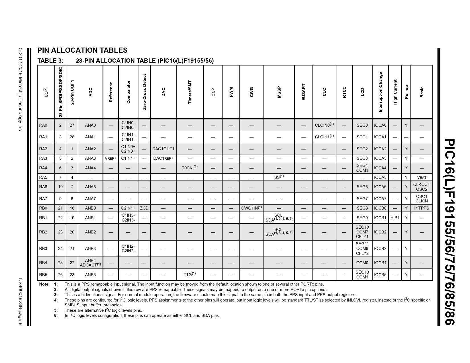 | Pages / Page | 754 / 9 — PIN ALLOCATION TABLES. TABLE 3:. 28-PIN ALLOCATION TABLE … |