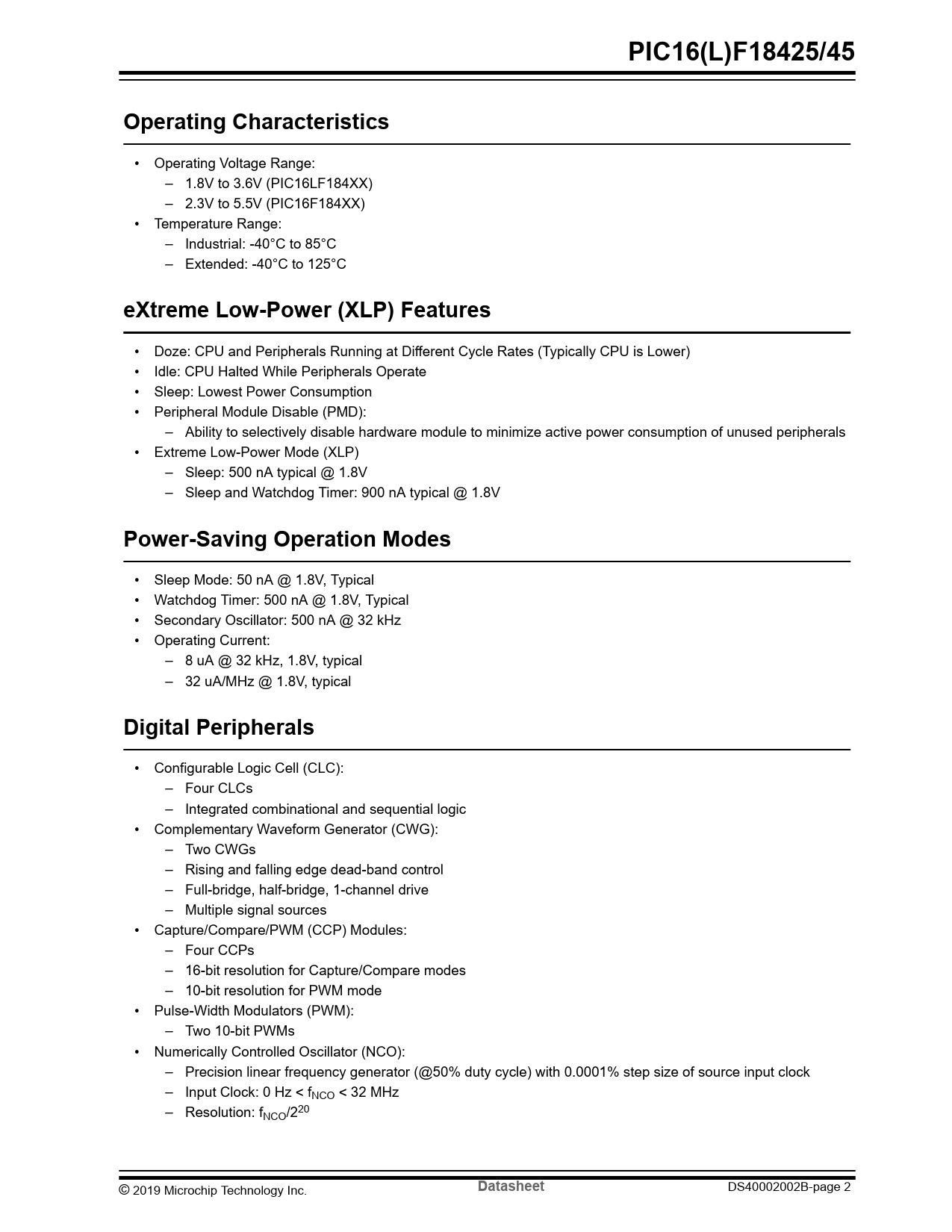 | Pages / Page | 708 / 2 — PIC16(L)F18425/45. Operating Characteristics. eXtreme Low-Power (XLP) … |