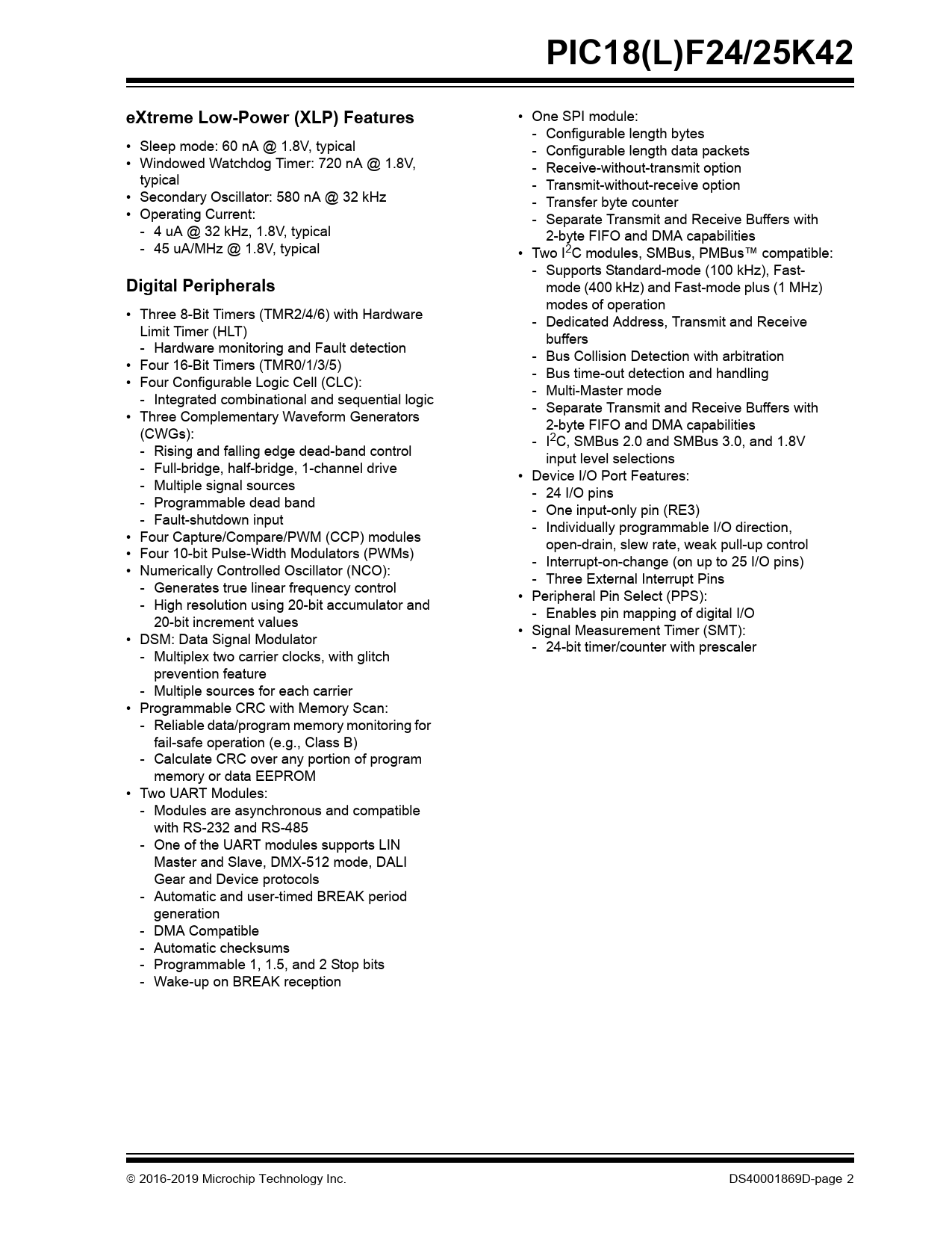 | Pages / Page | 794 / 2 — PIC18(L)F24/25K42. eXtreme Low-Power (XLP) Features. Digital Peripherals |