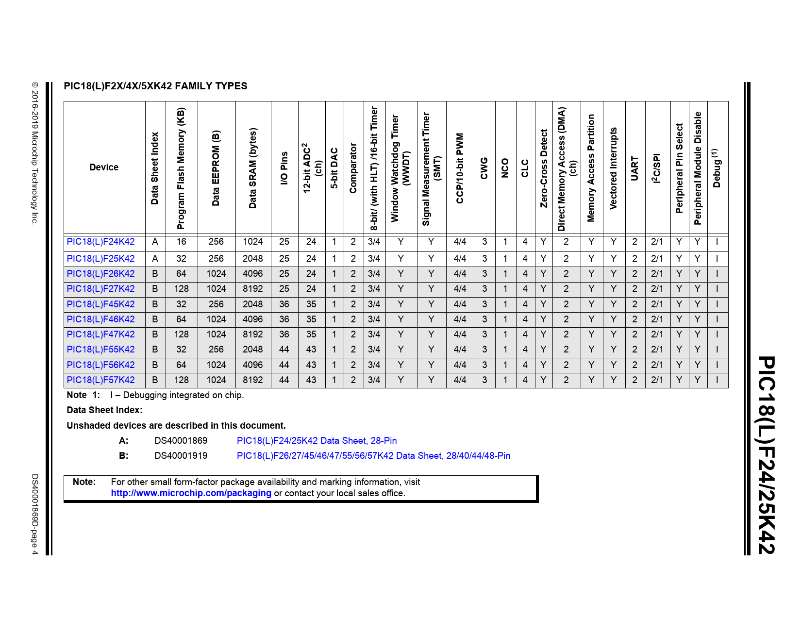 PIC18(L)F2X/4X/5XK42 FAMILY TYPES. (KB). ime. t T. rtition. dex. Select. 6-bi. (by. tor. rru. le Disab. (1). ins. Device. eet. PROM (. ara. Access (DMA)