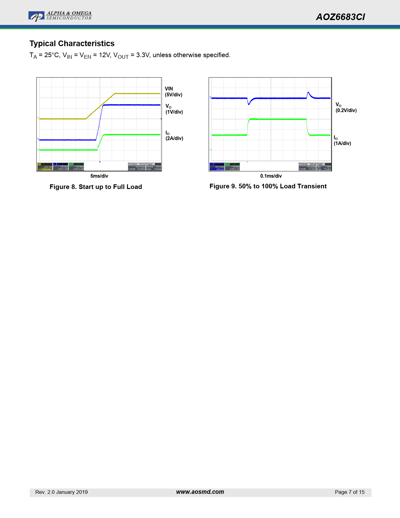 | Pages / Page | 15 / 7 — AOZ6683CI. Typical Characteristics. VIN (5V/div). (1V/div). (0.2V/div). … |