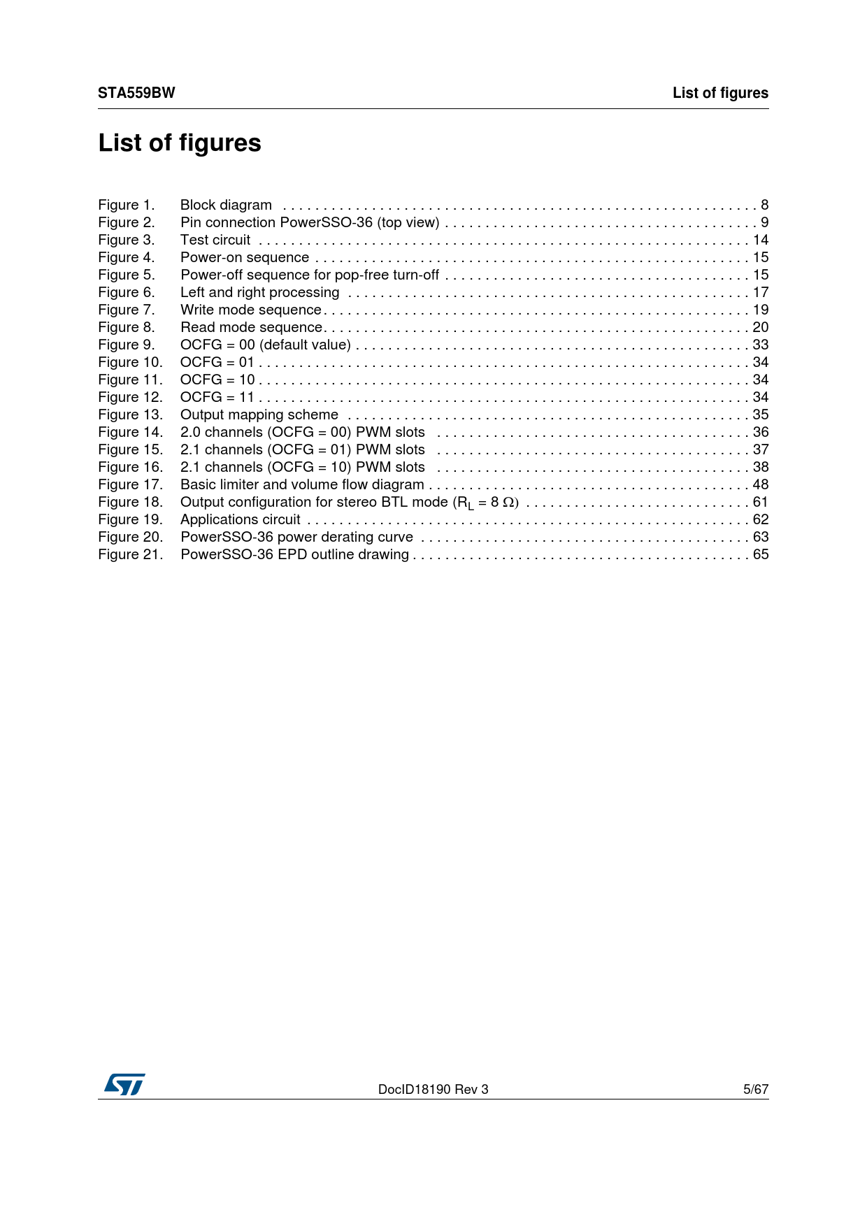 | Pages / Page | 67 / 5 — STA559BW. List of figures |