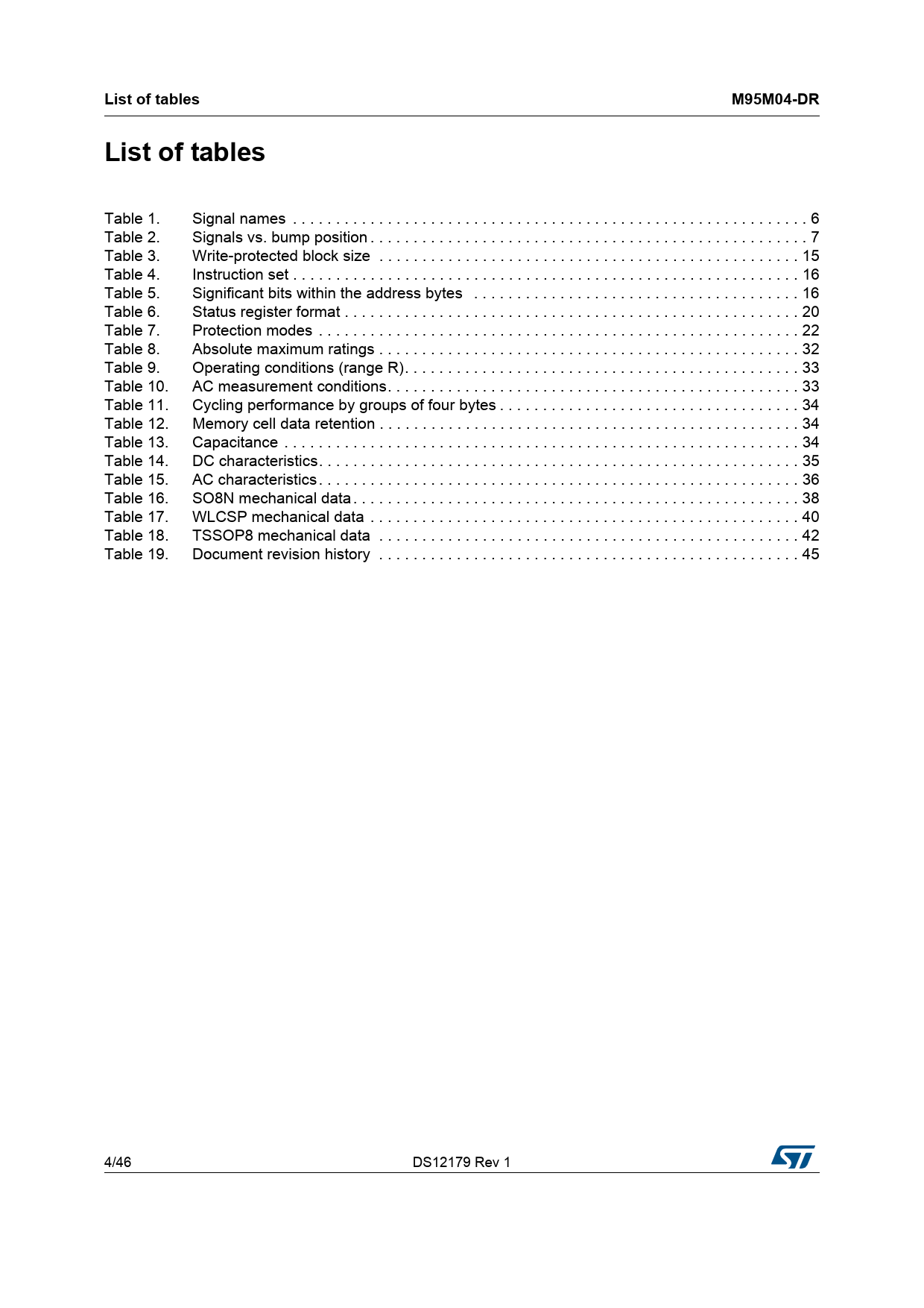 Pages / Page46 / 4 — List of tables. M95M04-DR
