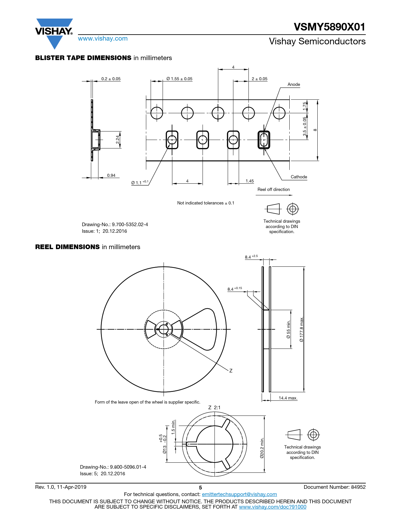 Pages / Page6 / 5 — VSMY5890X01. BLISTER TAPE DIMENSIONS. REEL DIMENSIONS