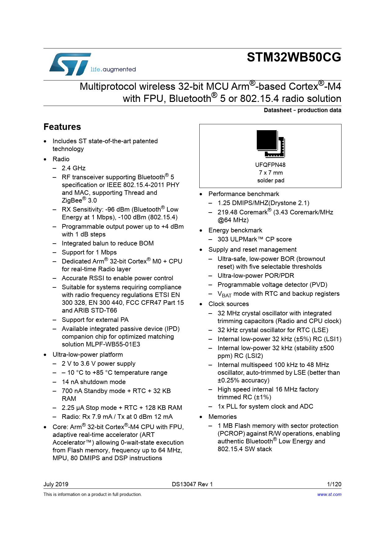 Datasheet STM32WB50CG (STMicroelectronics)