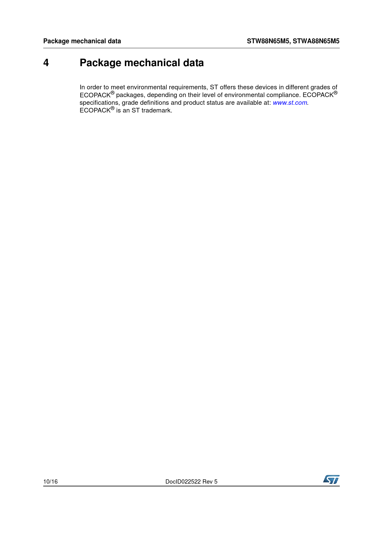 Pages / Page16 / 10 — Package mechanical data. STW88N65M5, STWA88N65M5