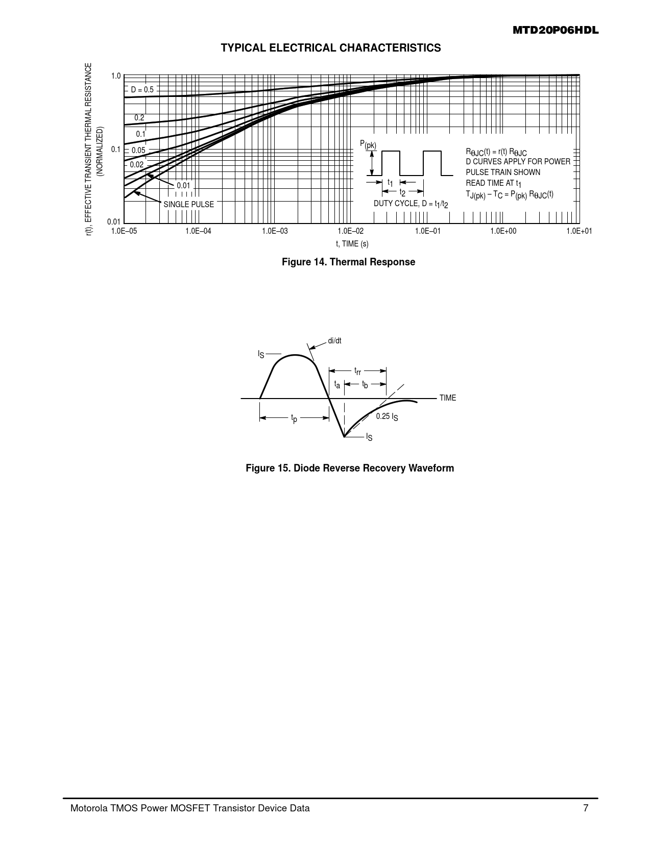 TYPICAL ELECTRICAL CHARACTERISTICS. Figure 14. Thermal Response. Figure 15. Diode Reverse Recovery Waveform