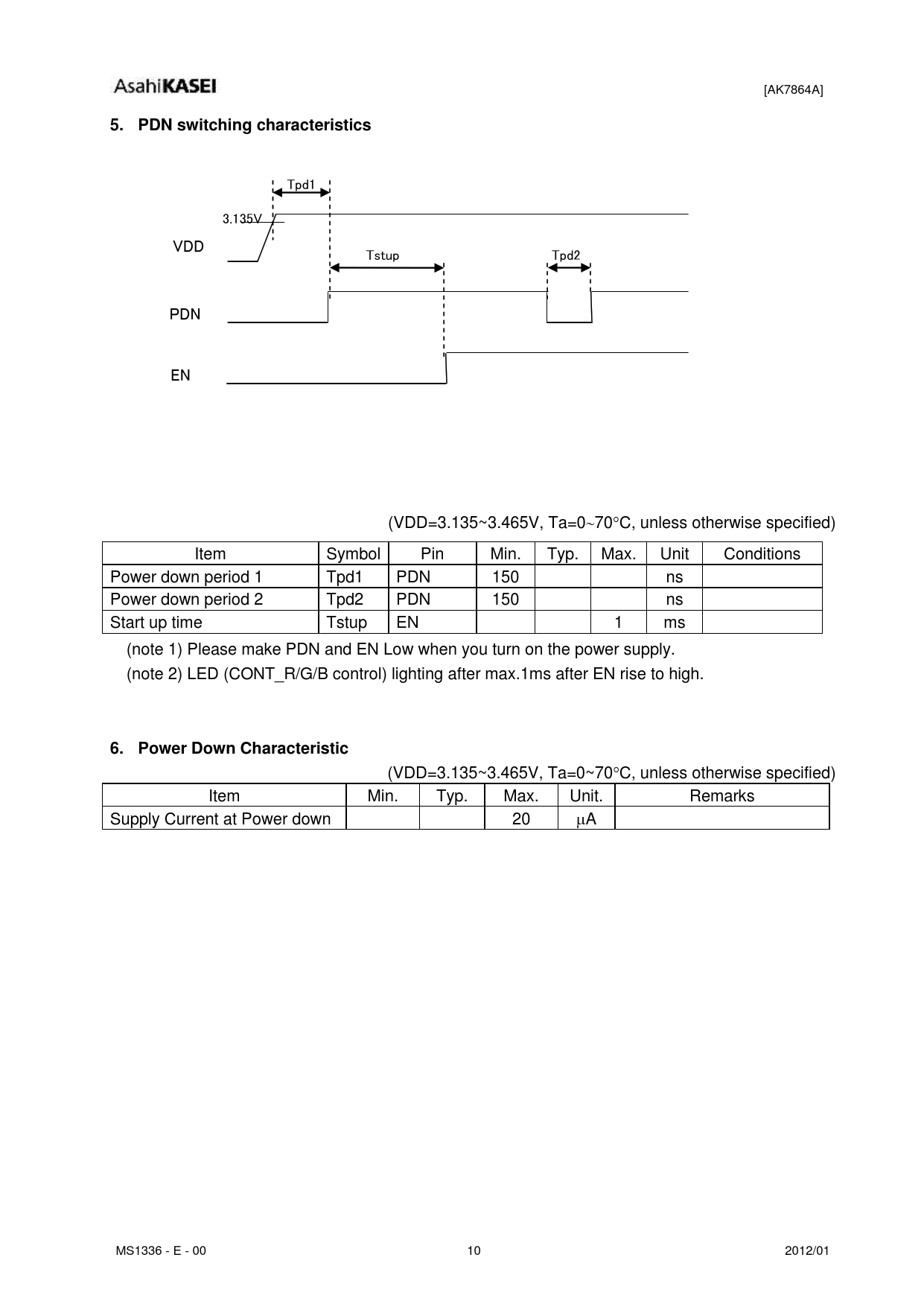Pages / Page13 / 10 — 5. PDN switching characteristics. 6. Power Down Characteristic