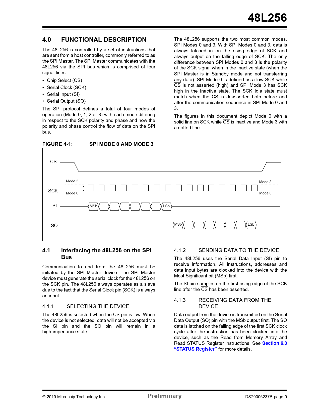 Pages / Page36 / 9 — 48L256. 4.0. FUNCTIONAL DESCRIPTION. FIGURE 4-1:. SPI MODE 0 AND MODE 3. …