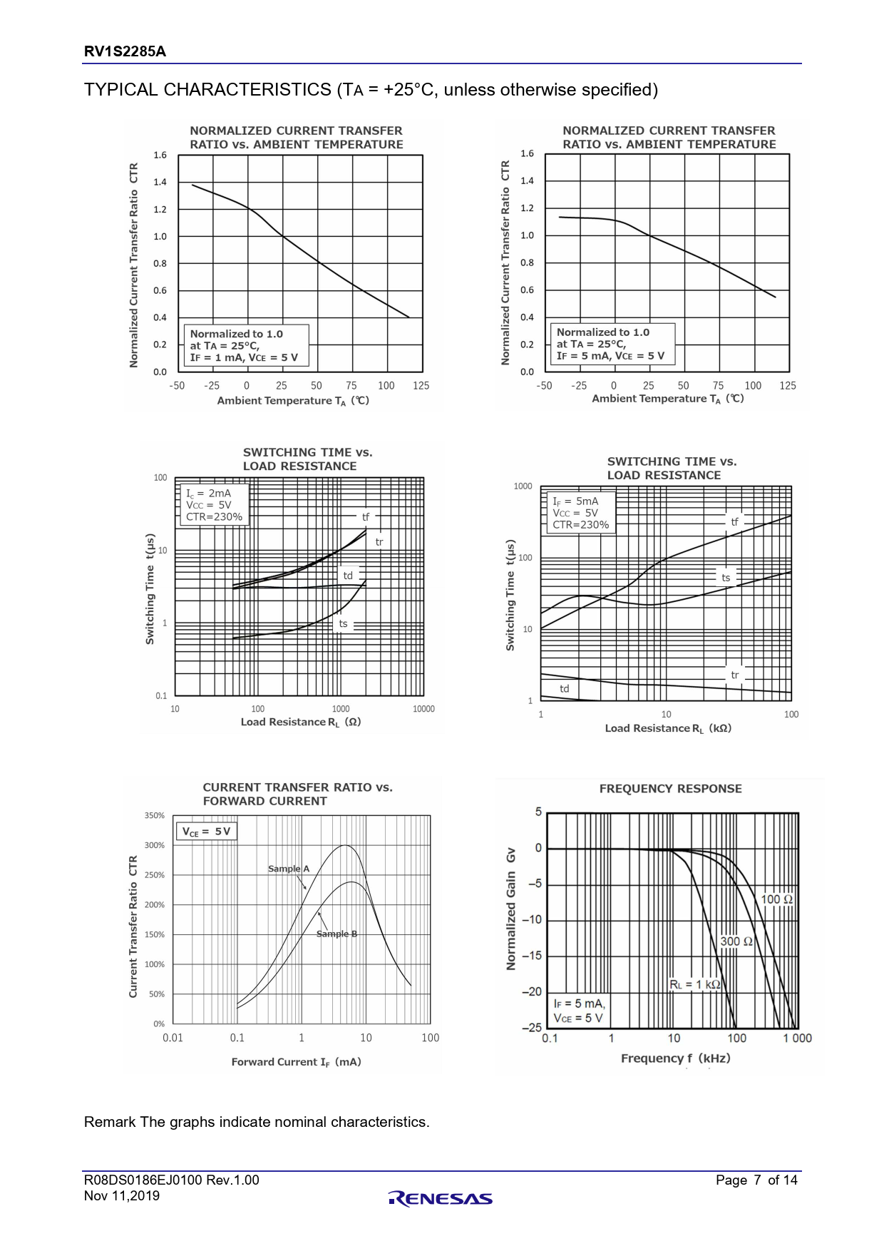 RV1S2285A. 章題. TYPICAL. CHARACTERISTICS. (TA. =. +25°C,. unless. otherwise. specified). Remark. The. graphs. indicate. nominal. characteristics