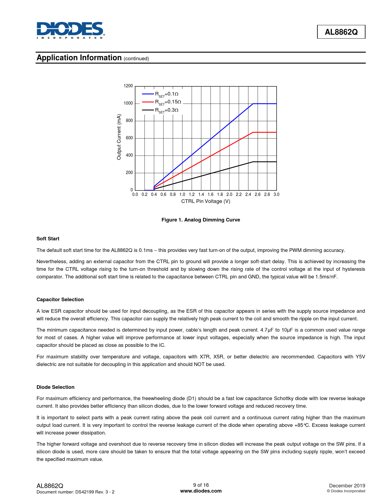 AL8862Q. Application Information. Figure 1. Analog Dimming Curve. Soft Start. Capacitor Selection. Diode Selection. www.diodes.com