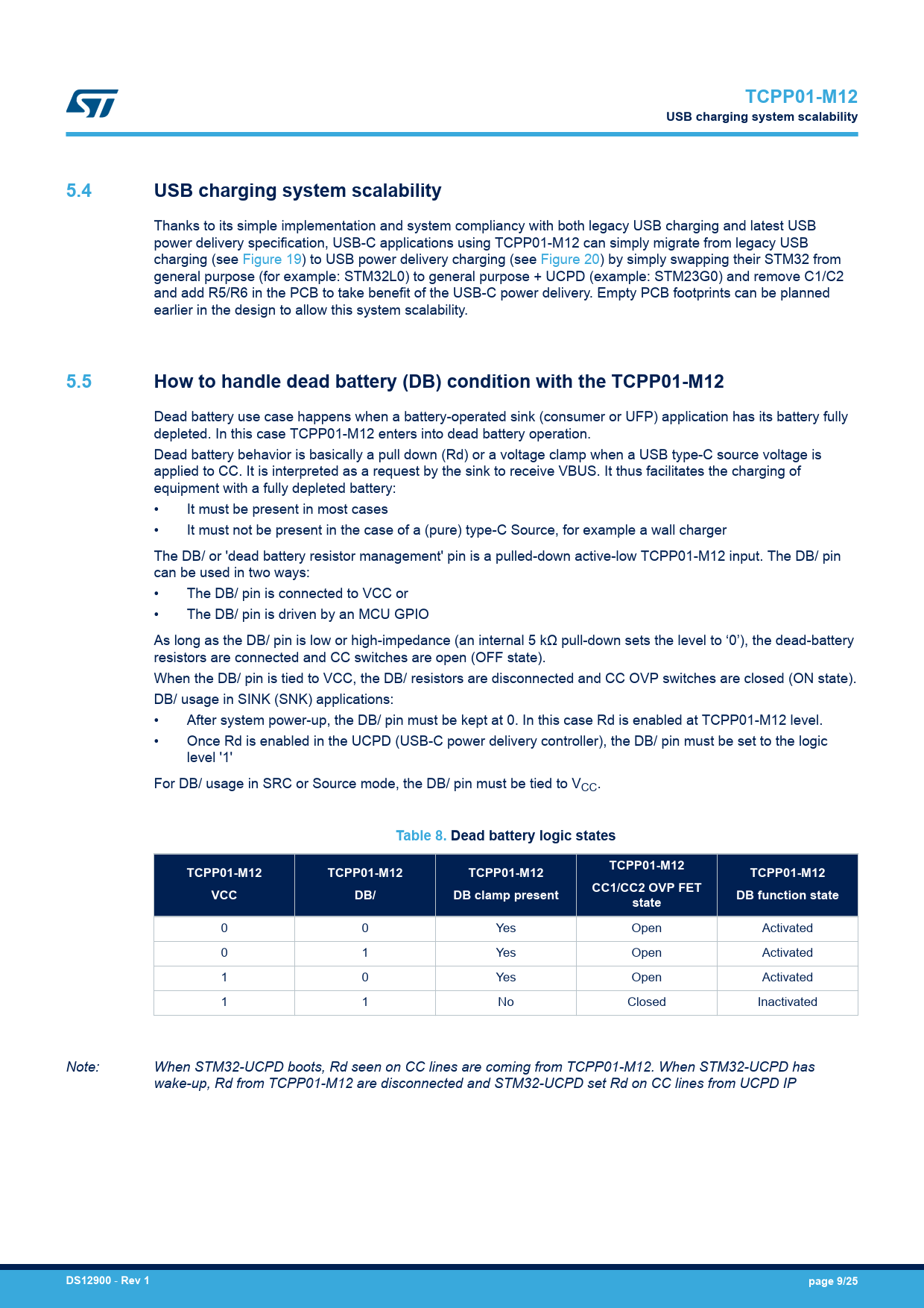 Pages / Page25 / 9 — TCPP01-M12. USB charging system scalability. 5.4. 5.5. How to handle dead …
