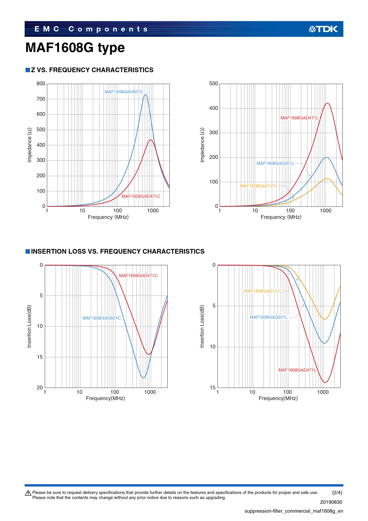 Pages / Page4 / 2 — E M C C o m p o n e n t s. MAF1608G type. Z VS. FREQUENCY …
