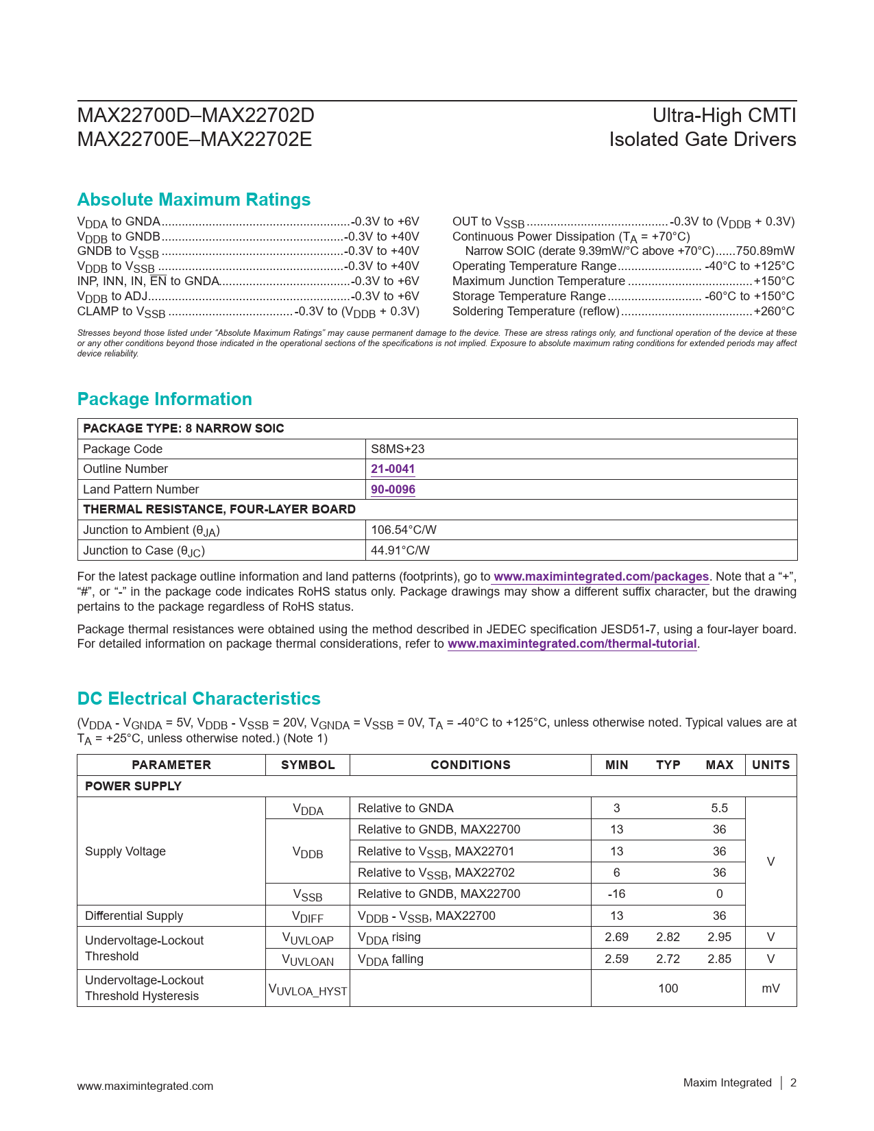 Absolute Maximum Ratings. Package Information. PACKAGE TYPE: 8 NARROW SOIC. 21-0041. 90-0096