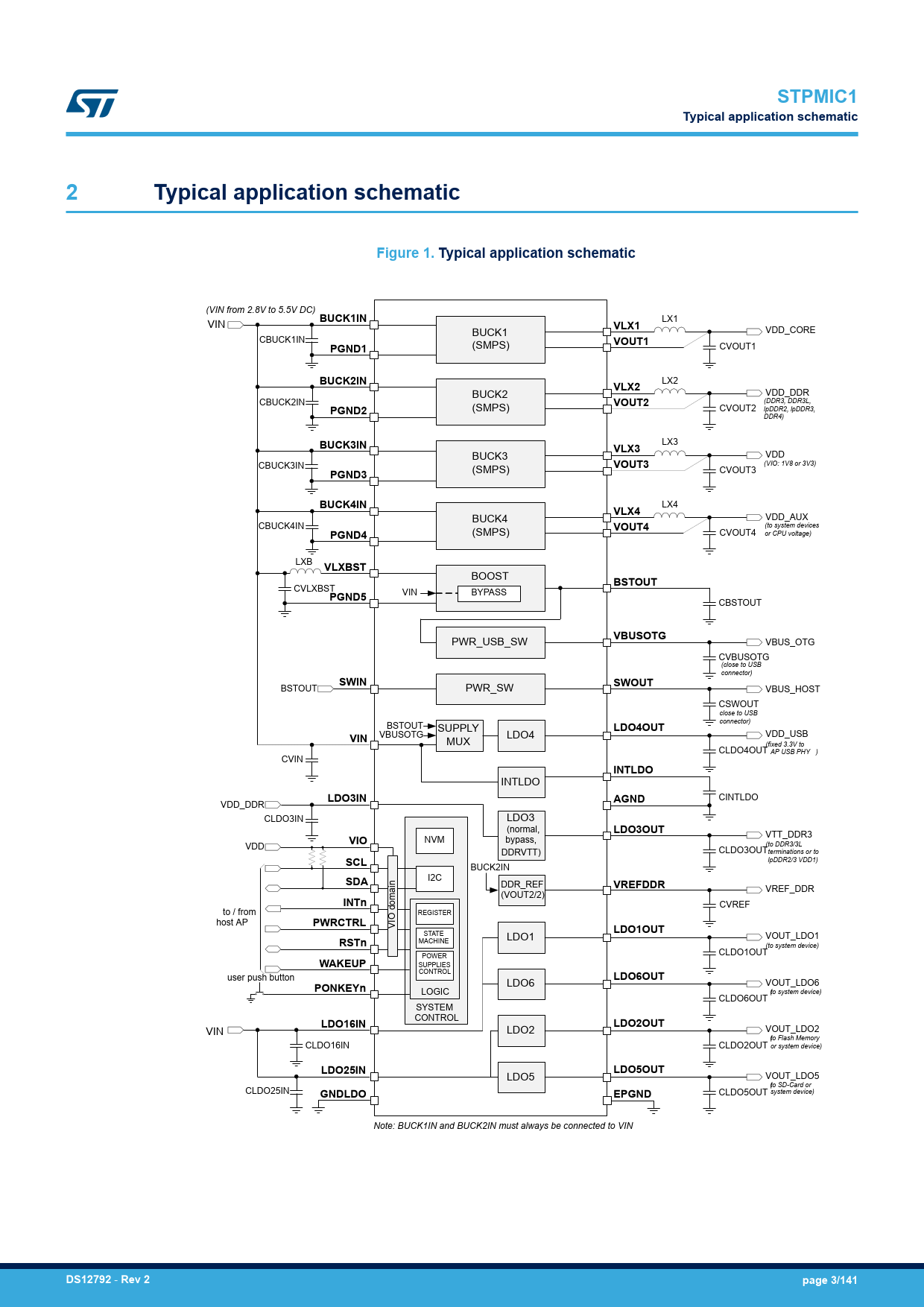 | Pages / Page | 141 / 3 — STPMIC1. Typical application schematic. Figure 1. Typical application … |