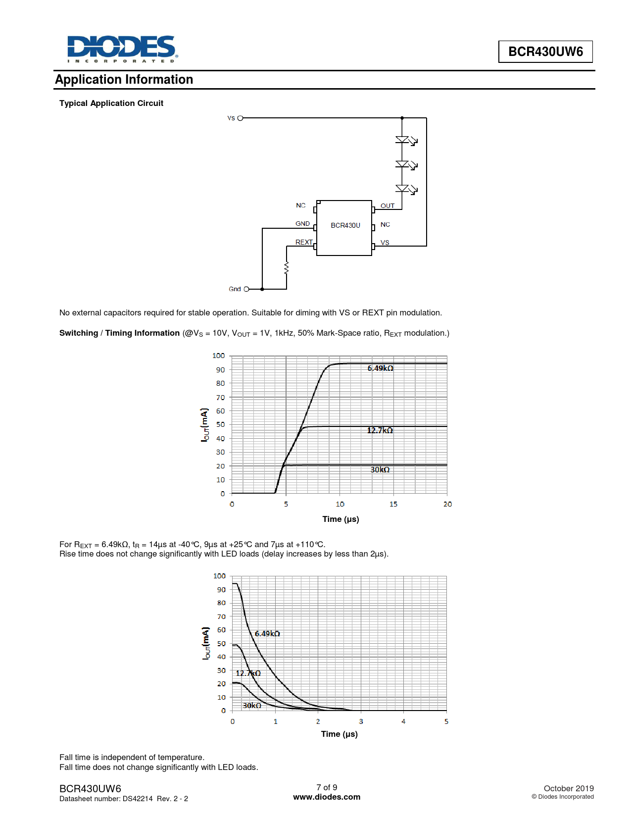 Fall time is independent of temperature. Fall time does not change significantly with LED loads. BCR430UW6 7 of 9 October 2019 Datasheet number: DS42214 Rev. 2 - 2