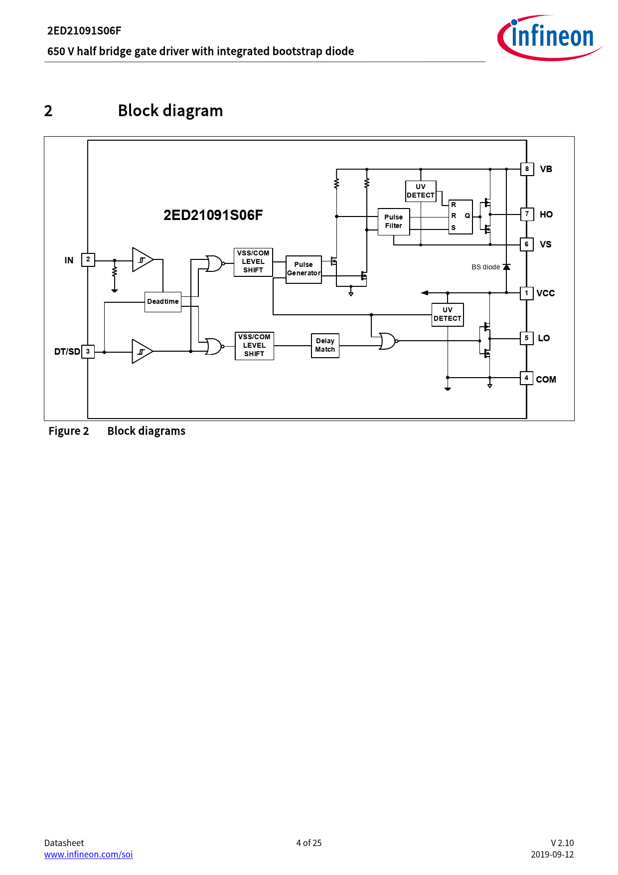 2ED21091S06F 650 V half bridge gate driver with integrated bootstrap diode 2 Block diagram