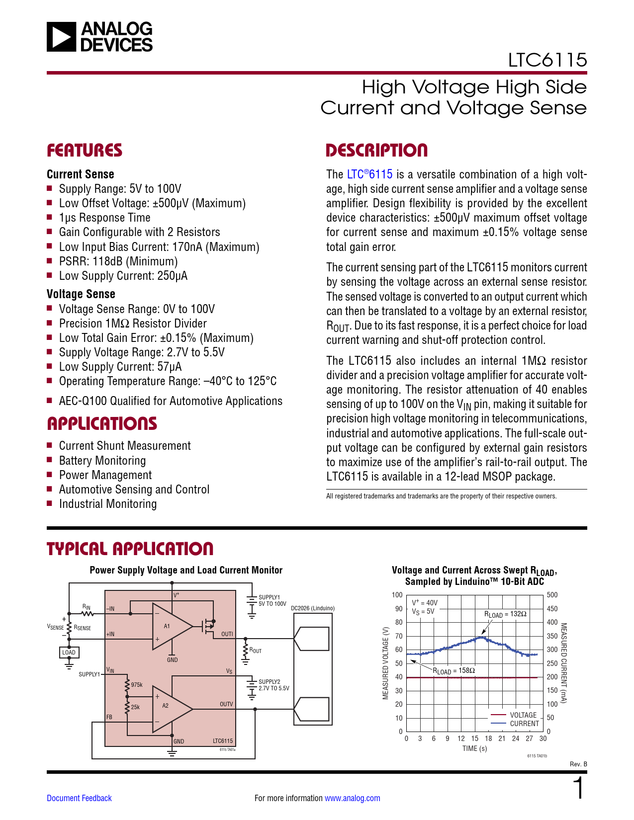 LTC6115 High Voltage High Side Current and Voltage Sense