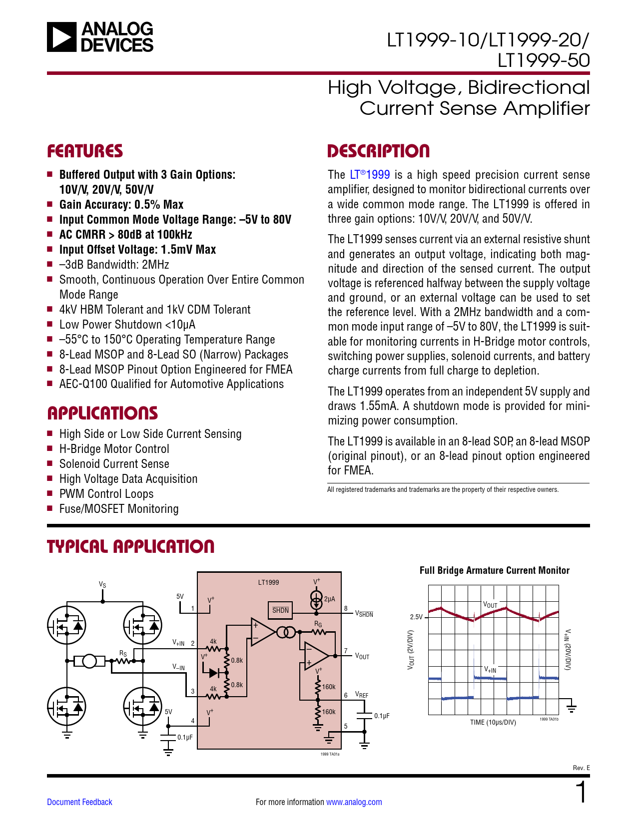 Datasheet LT1999-10, LT1999-20, LT1999-50 Analog Devices, Revision: E
