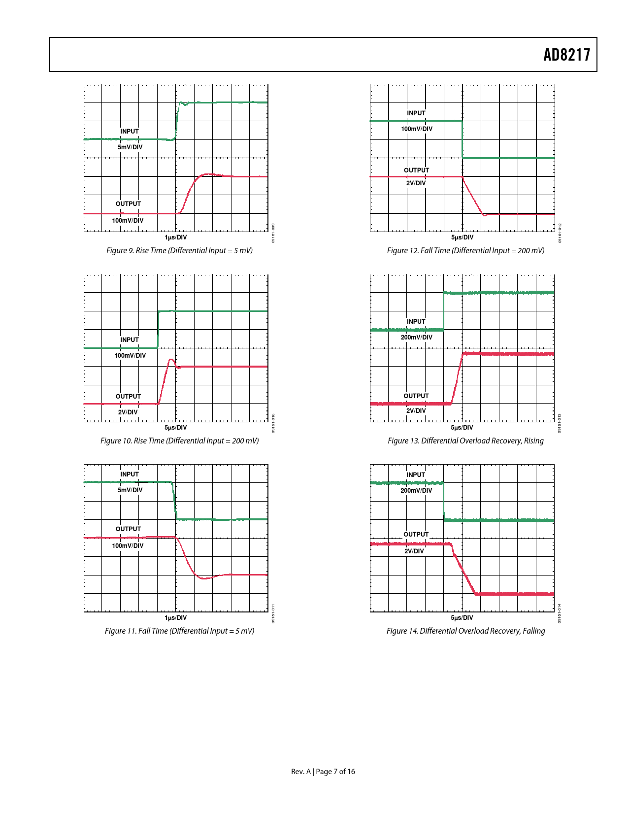 16 09 09 Figure 10. Rise Time (Differential Input = 200 mV) Figure 13. Differential Overload Recovery, Rising