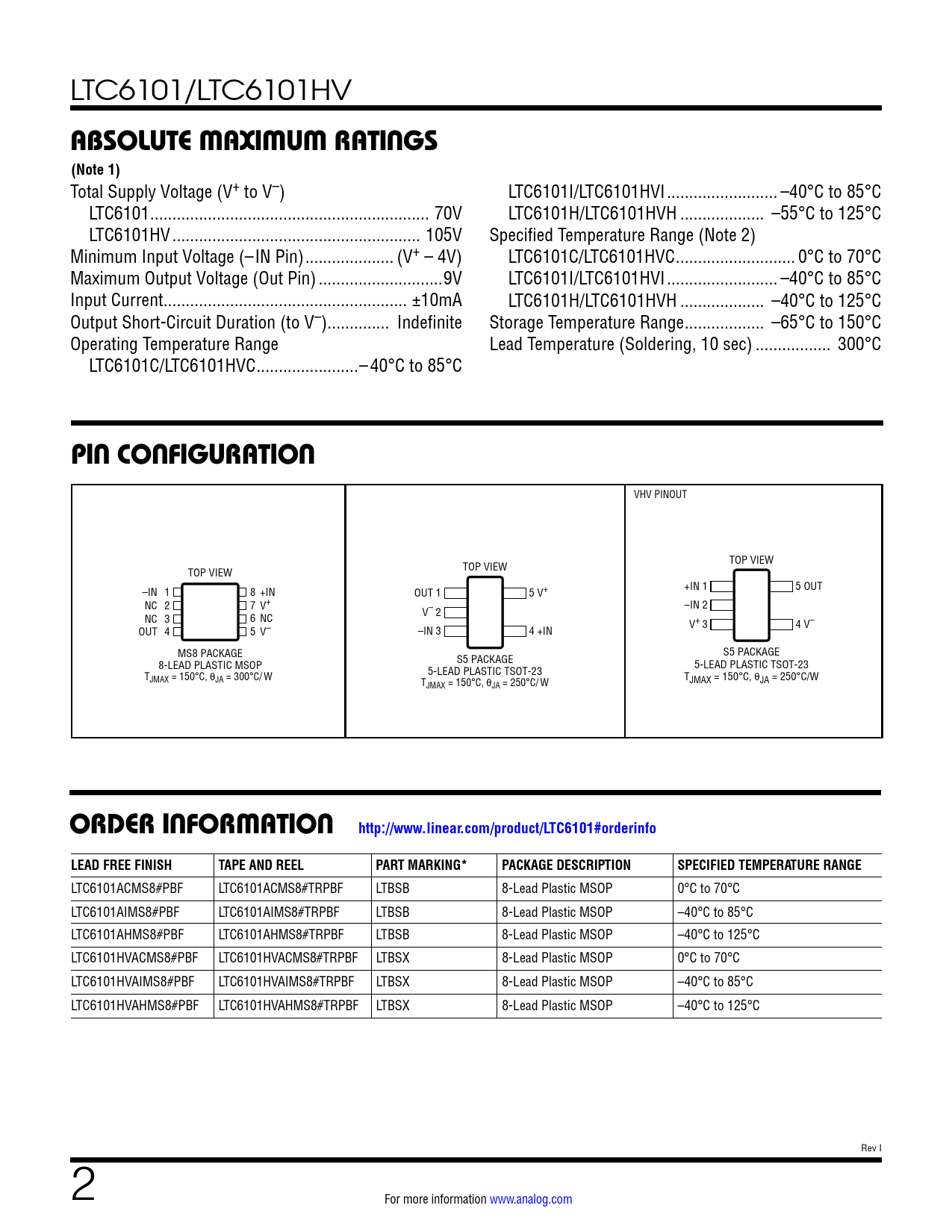 Datasheet LTC6101, LTC6101HV (Analog Devices) - 2