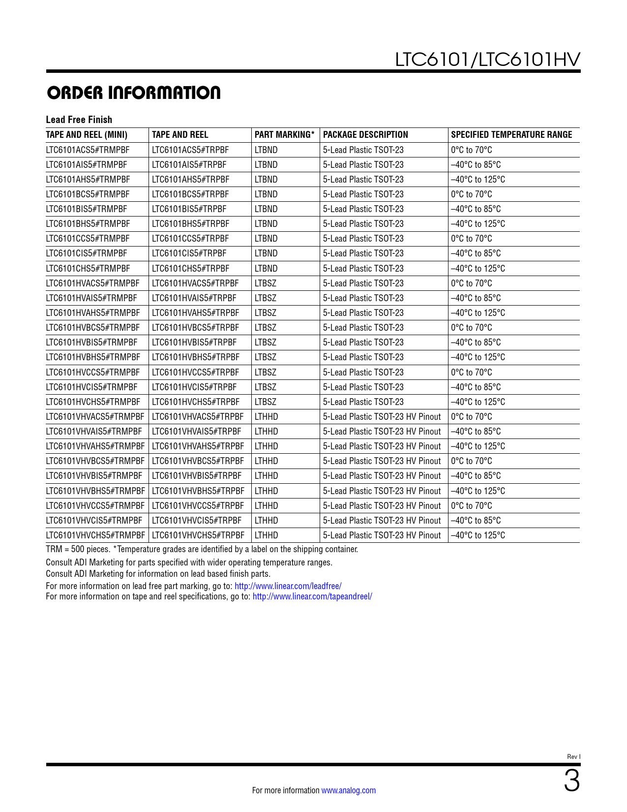 Datasheet LTC6101, LTC6101HV (Analog Devices) - 3