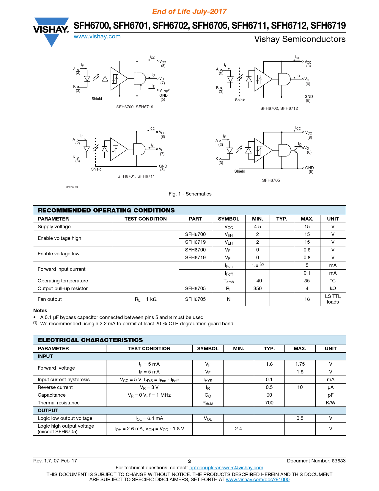 End of Life July-2017 SFH6700, SFH6701, SFH6702, SFH6705, SFH6711, SFH6712, SFH6719
