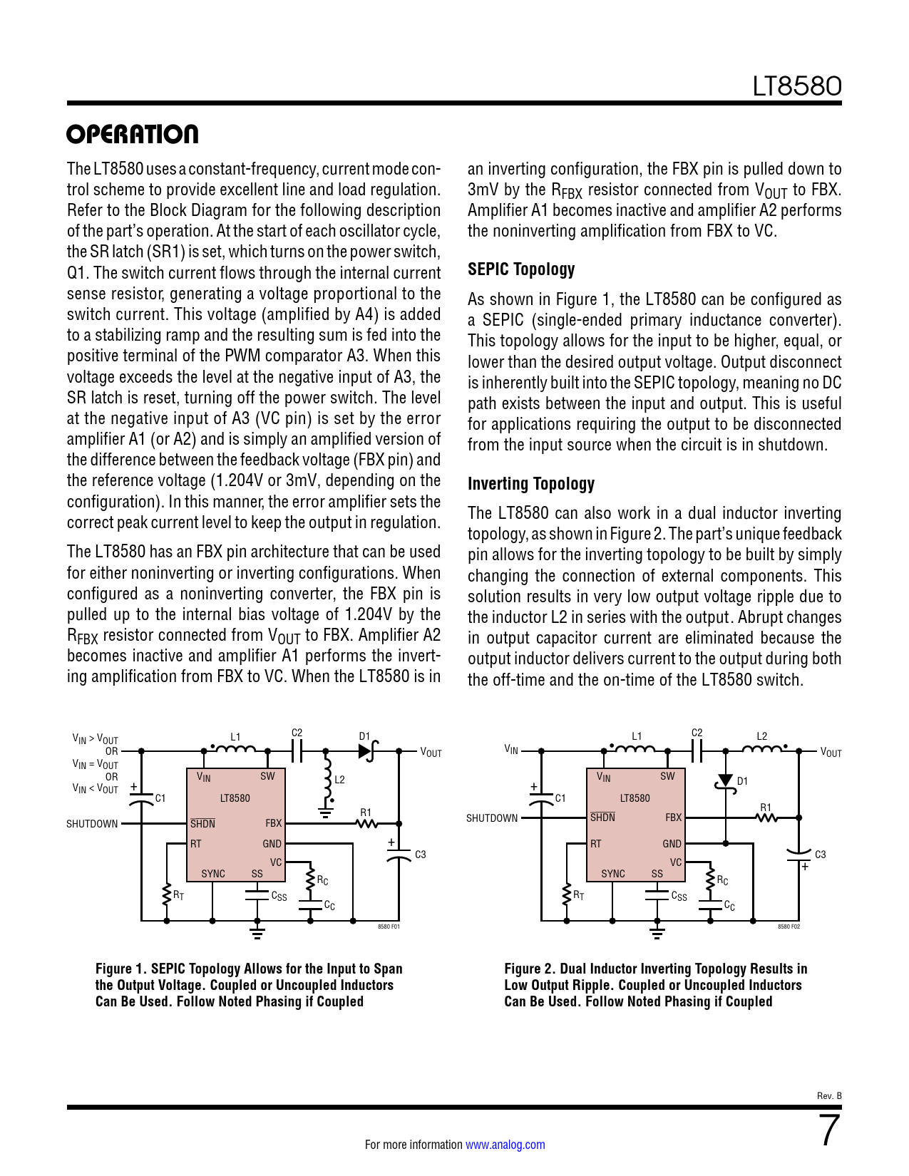 link to page 7 link to page 7 LT8580 OPERATION The LT8580 uses a constant-frequency, current mode con- an inverting configuration, the FBX pin is pulled down to trol scheme to provide excellent line and load regulation. 3mV by the RFBX resistor connected from VOUT to FBX. Refer to the Block Diagram for the following description Amplifier A1 becomes inactive and amplifier A2 performs of the part’s operation. At the start of each oscillator cycle, the noninverting amplification from FBX to VC. the SR latch (SR1) is set, which turns on the power switch, Q1. The switch current flows through the internal current SEPIC Topology sense resistor, generating a voltage proportional to the As shown in Figure 1, the LT8580 can be configured as switch current. This voltage (amplified by A4) is added a SEPIC (single-ended primary inductance converter). to a stabilizing ramp and the resulting sum is fed into the This topology allows for the input to be higher, equal, or positive terminal of the PWM comparator A3. When this lower than the desired output voltage. Output disconnect voltage exceeds the level at the negative input of A3, the is inherently built into the SEPIC topology, meaning no DC SR latch is reset, turning off the power switch. The level path exists between the input and output. This is useful at the negative input of A3 (VC pin) is set by the error for applications requiring the output to be disconnected amplifier A1 (or A2) and is simply an amplified version of from the input source when the circuit is in shutdown. the difference between the feedback voltage (FBX pin) and the reference voltage (1.204V or 3mV, depending on the Inverting Topology configuration). In this manner, the error amplifier sets the correct peak current level to keep the output in regulation. The LT8580 can also work in a dual inductor inverting topology, as shown in Figure 2. The part’s unique feedback The LT8580 has an FBX pin architecture that can be used pin allows for the inverting topology to be built by simply for either noninverting or inverting configurations. When changing the connection of external components. This configured as a noninverting converter, the FBX pin is solution results in very low output voltage ripple due to pulled up to the internal bias voltage of 1.204V by the the inductor L2 in series with the output. Abrupt changes RFBX resistor connected from VOUT to FBX. Amplifier A2 in output capacitor current are eliminated because the becomes inactive and amplifier A1 performs the invert- output inductor delivers current to the output during both ing amplification from FBX to VC. When the LT8580 is in the off-time and the on-time of the LT8580 switch. V L1 C2 D1 C2 IN > VOUT L1 L2 OR • V • • OUT VIN VOUT VIN = VOUT OR VIN SW L2 VIN SW V D1 IN < VOUT + + C1 LT8580 • C1 LT8580 R1 R1 SHUTDOWN SHDN FBX SHUTDOWN SHDN FBX RT GND + RT GND C3 C3 VC VC + SYNC SS R SYNC SS C RC RT CSS RT CSS CC CC 8580 F01 8580 F02 Figure 1. SEPIC Topology Allows for the Input to SpanFigure 2. Dual Inductor Inverting Topology Results inthe Output Voltage. Coupled or Uncoupled InductorsLow Output Ripple. Coupled or Uncoupled InductorsCan Be Used. Follow Noted Phasing if CoupledCan Be Used. Follow Noted Phasing if Coupled Rev. B For more information www.analog.com 7 Document Outline Features Applications Typical Application Description Absolute Maximum Ratings Pin Configuration Order Information Electrical Characteristics Pin Functions Block Diagram Operation Applications Information Typical Applications Package Description Revision History Typical Application Related Parts