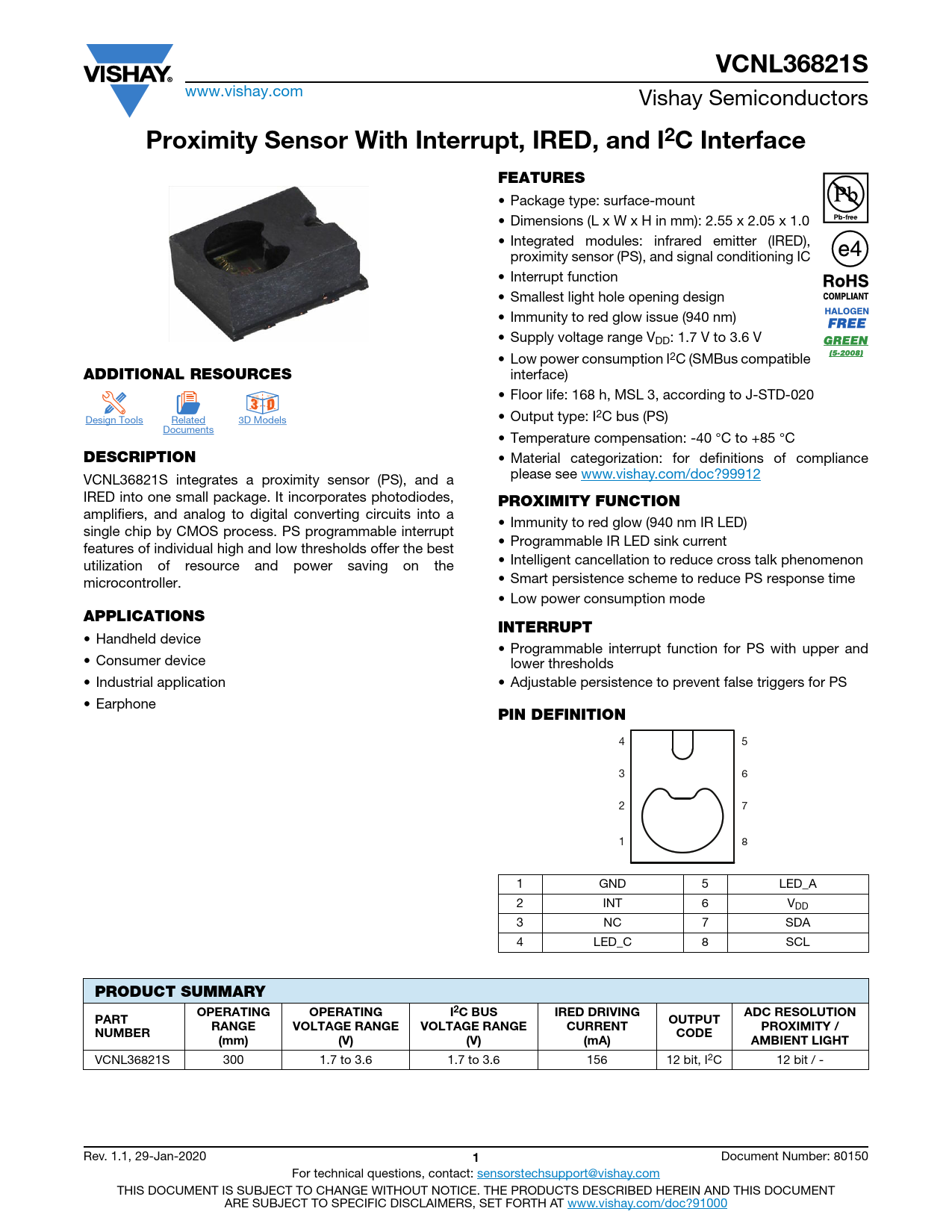 VCNL36821S. Proximity Sensor With Interrupt, IRED, and I2C Interface. FEATURES. ADDITIONAL RESOURCES. D 3. 3 D. DESCRIPTION