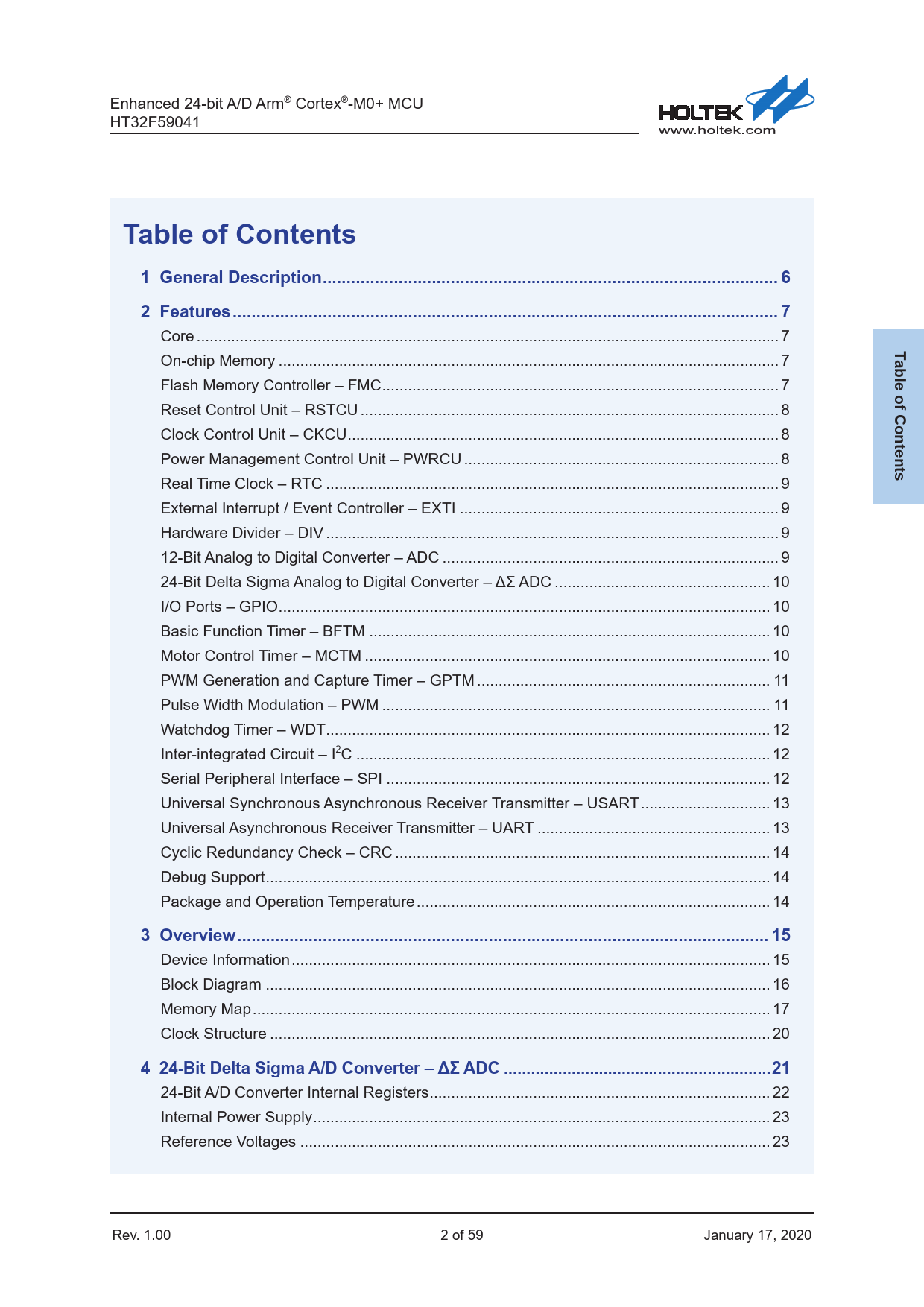 | Pages / Page | 59 / 2 — Table of Contents. 1 General Description .. 6. 2 Features ... 7. 3 … |