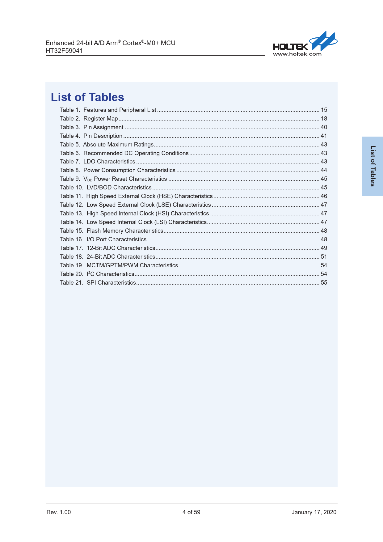 | Pages / Page | 59 / 4 — List of Tables. List of T. ables |