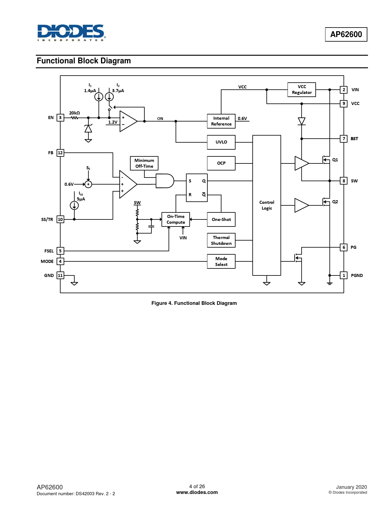 | Pages / Page | 26 / 4 — AP62600. Functional Block Diagram. VCC. VIN. 1.4μA. 3.7μA. Regulator. … |