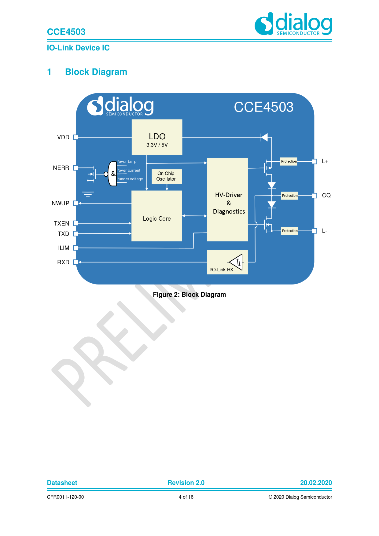 | Pages / Page | 16 / 4 — CCE4503. IO-Link Device IC. Block Diagram. Figure 2: Block Diagram. … |