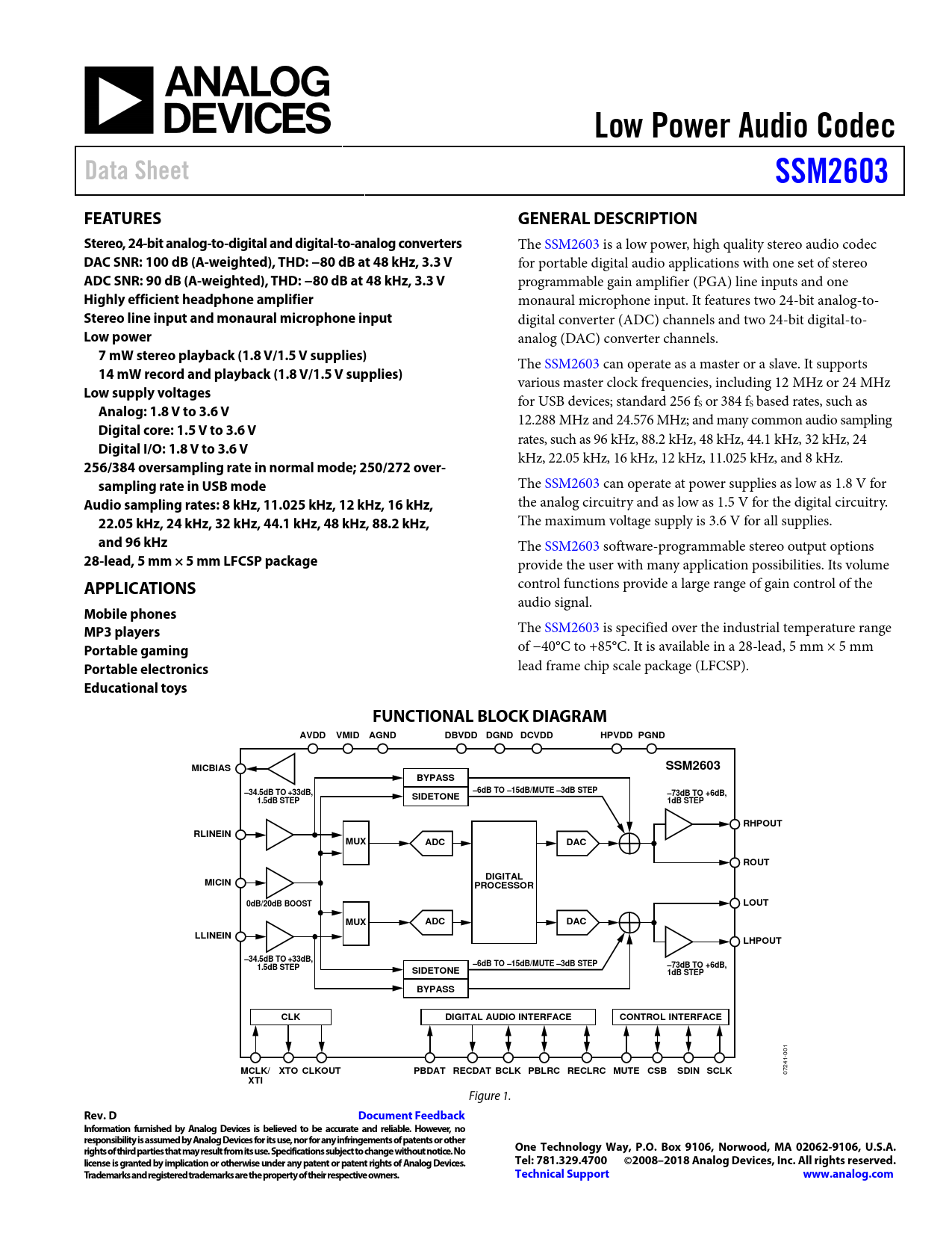 Datasheet SSM2603 (Analog Devices)