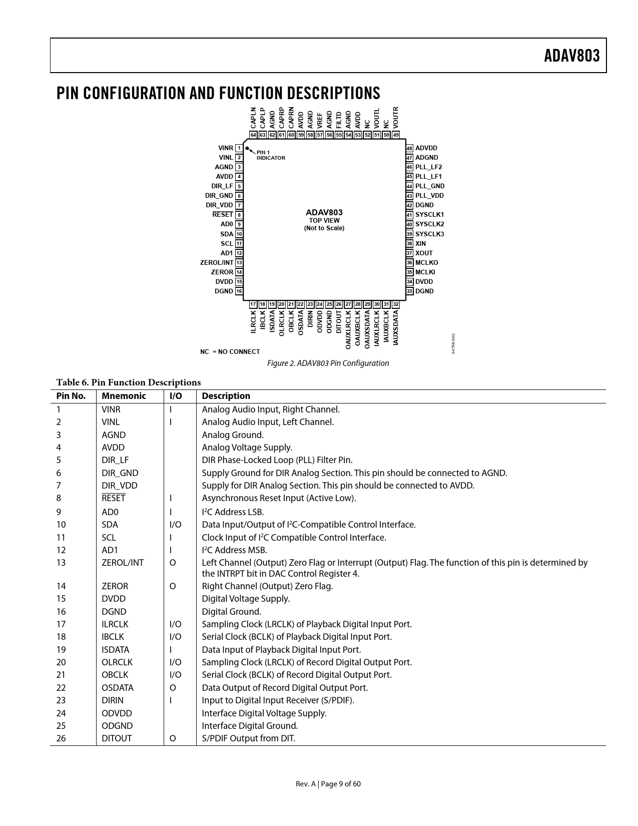 Pages / Page60 / 9 — ADAV803. PIN CONFIGURATION AND FUNCTION DESCRIPTIONS. LTD. CAP. 64 63 62 …