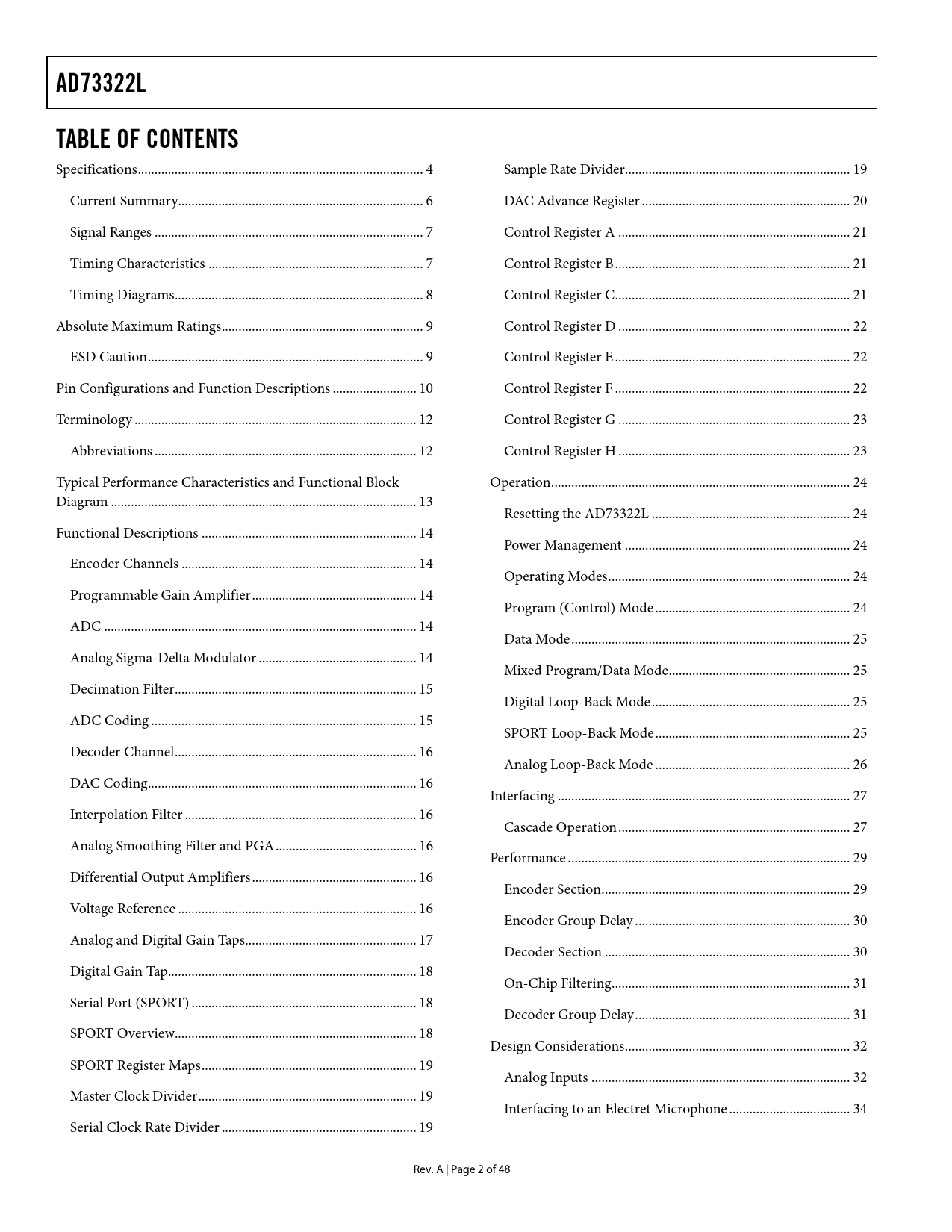 Pages / Page48 / 2 — AD73322L. TABLE OF CONTENTS