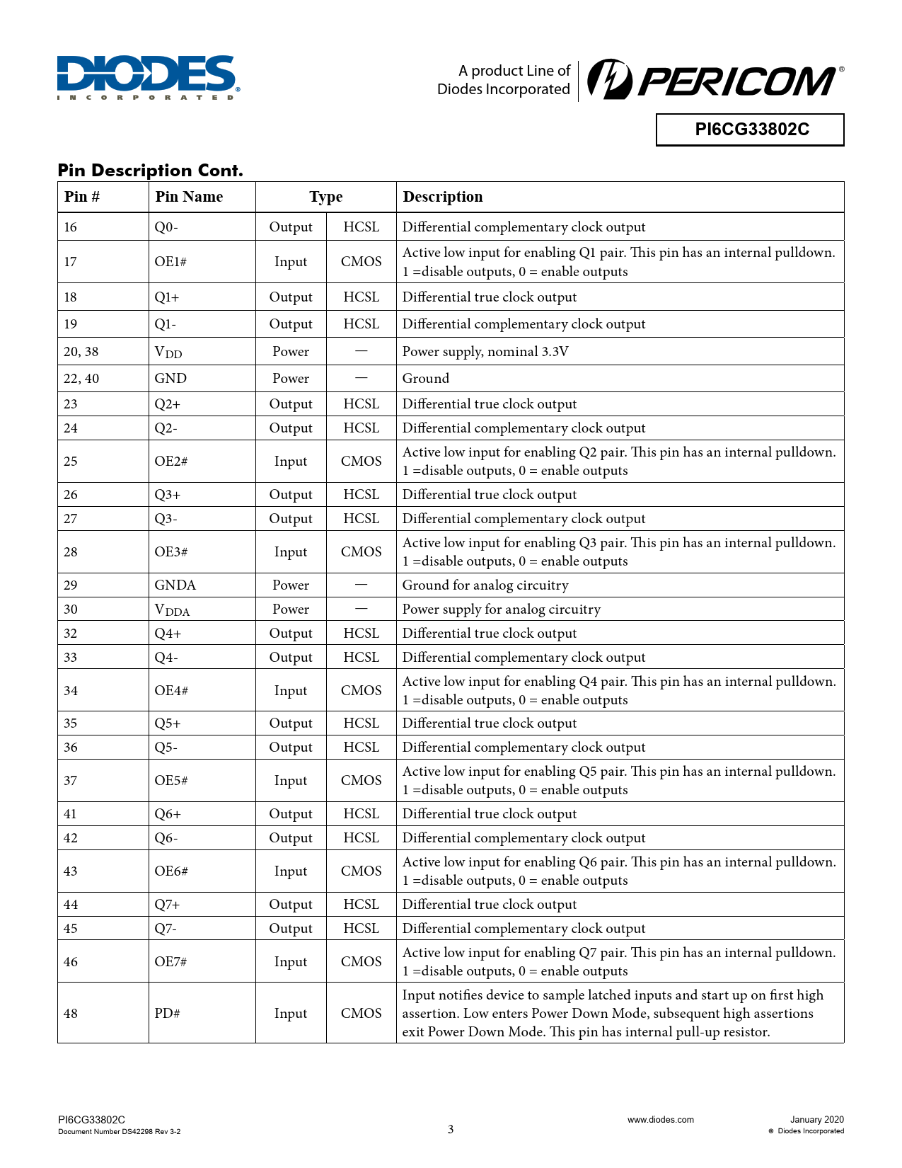 PI6CG33802C. Pin Description Cont. Pin #. Pin Name. Type. Description