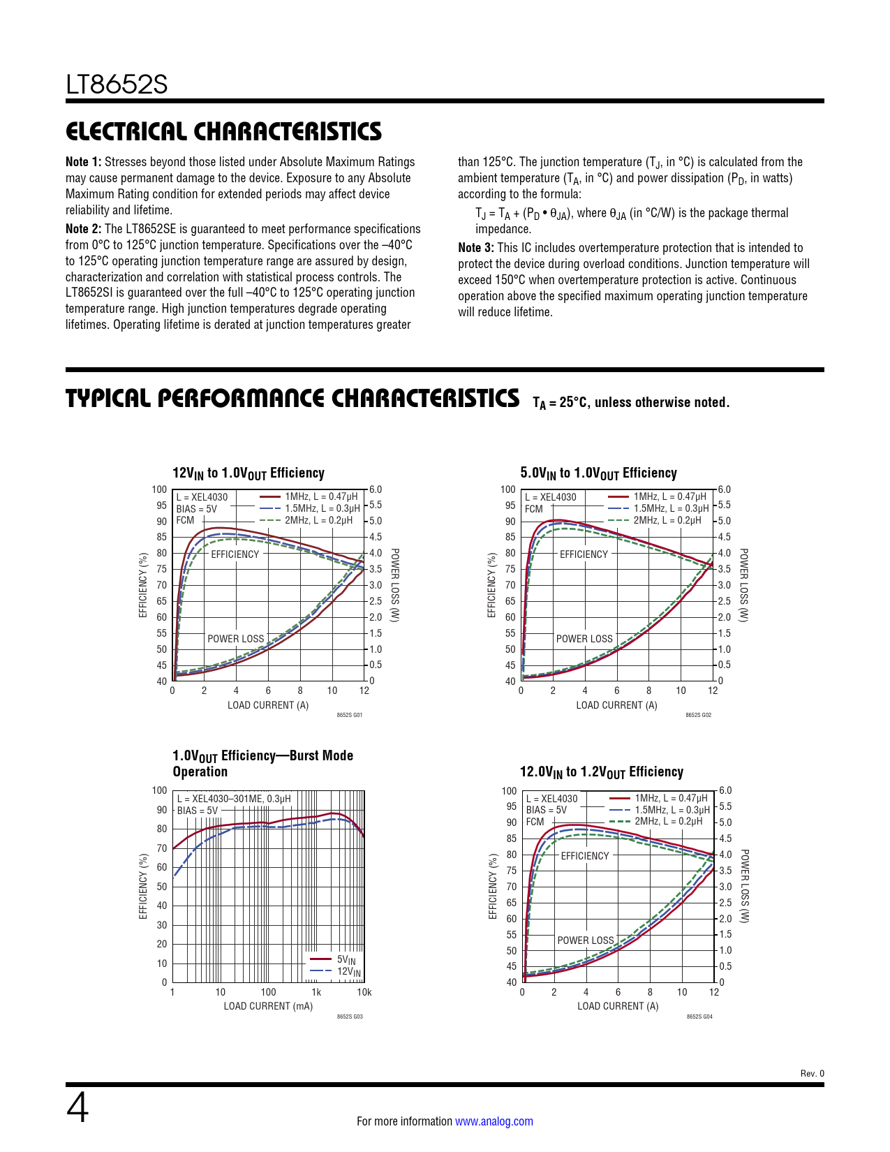 The LT8652SE is guaranteed to meet performance specifications impedance. from 0°C to 125°C junction temperature. Specifications over the –40°C