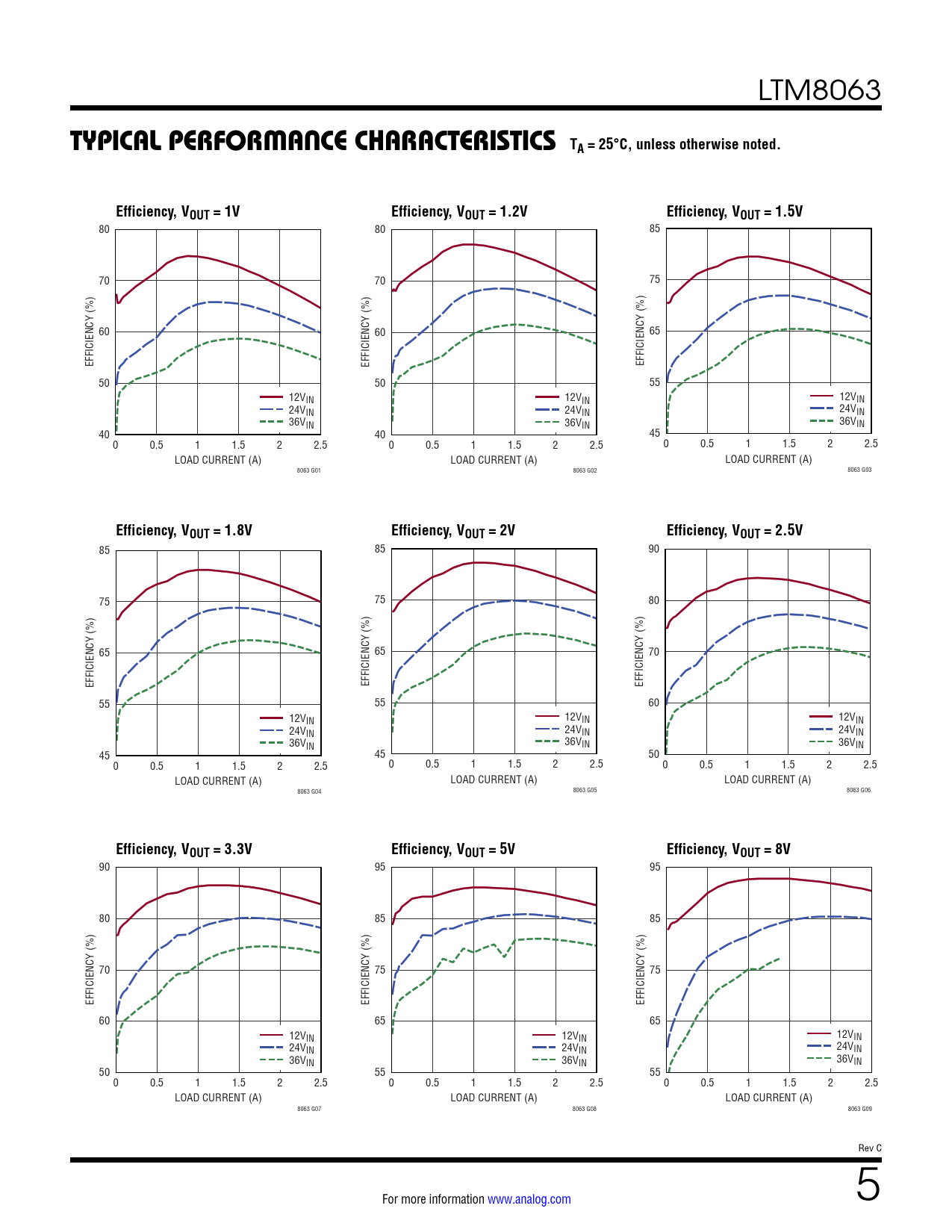 90 95 95 80 85 85 70 75 75 EFFICIENCY (%) EFFICIENCY (%) EFFICIENCY (%) 60 65 65 12VIN 12VIN 12VIN 24VIN 24VIN 24VIN 36VIN 36VIN 36VIN 50 55 55 0 0.5 1 1.5 2 2.5 0 0.5 1 1.5 2 2.5 0 0.5 1 1.5 2 2.5 LOAD CURRENT (A) LOAD CURRENT (A) LOAD CURRENT (A) 8063 G07 8063 G08 8063 G09 Rev C For more information www.analog.com 5 Document Outline Features Applications Typical Application Description Absolute Maximum Ratings Order Information Pin Configuration Electrical Characteristics Typical Performance Characteristics Pin Functions Block Diagram Operation Applications Information Typical Applications Package Photo Package Description Revision History Typical Application Related Parts