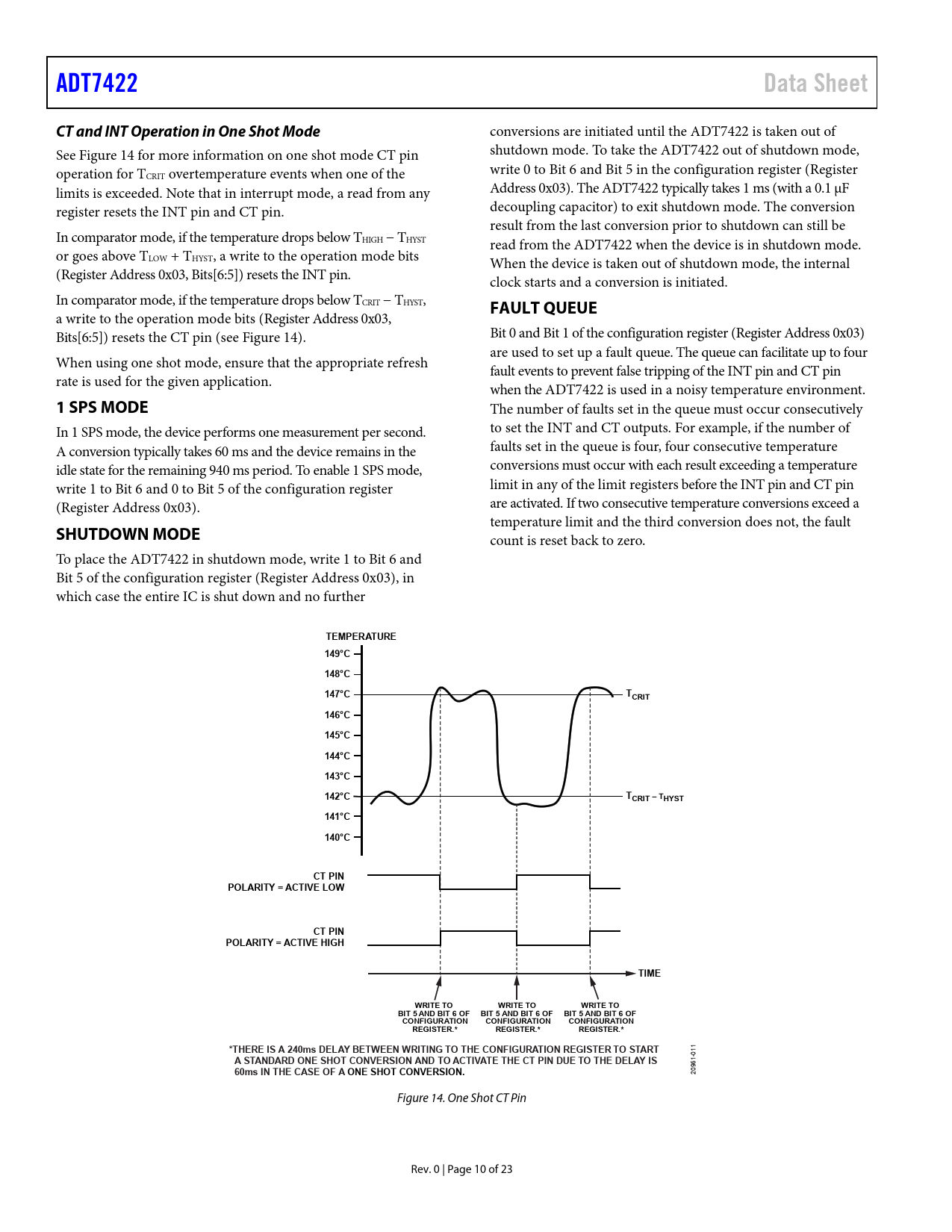 Pages / Page23 / 10 — ADT7422. Data Sheet. CT and INT Operation in One Shot Mode. FAULT QUEUE. …