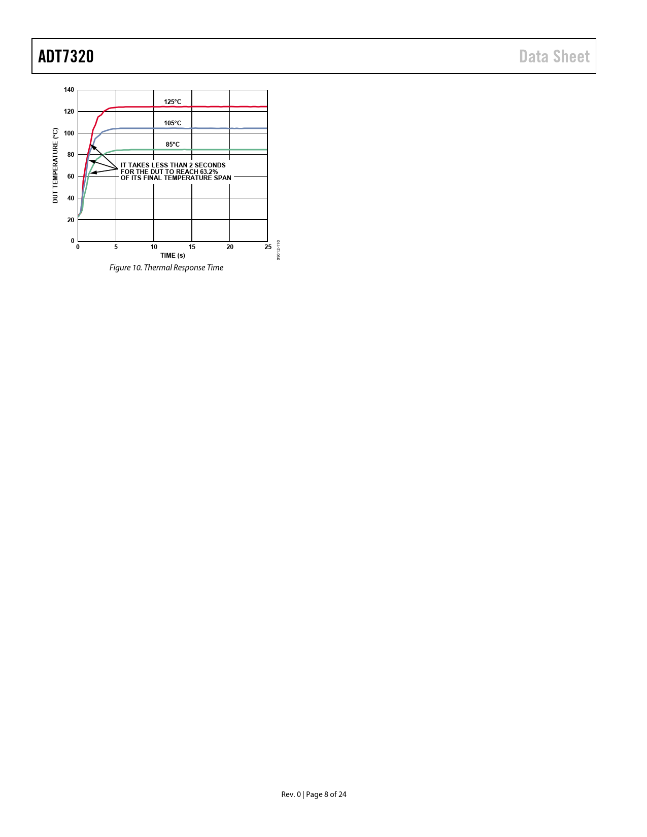 ADT7320. Data Sheet. 140. 125°C. 120. 105°C. ) 100. °C ( E R. 85°C. A R E. IT TAKES LESS THAN 2 SECONDS. FOR THE DUT TO REACH 63.2%