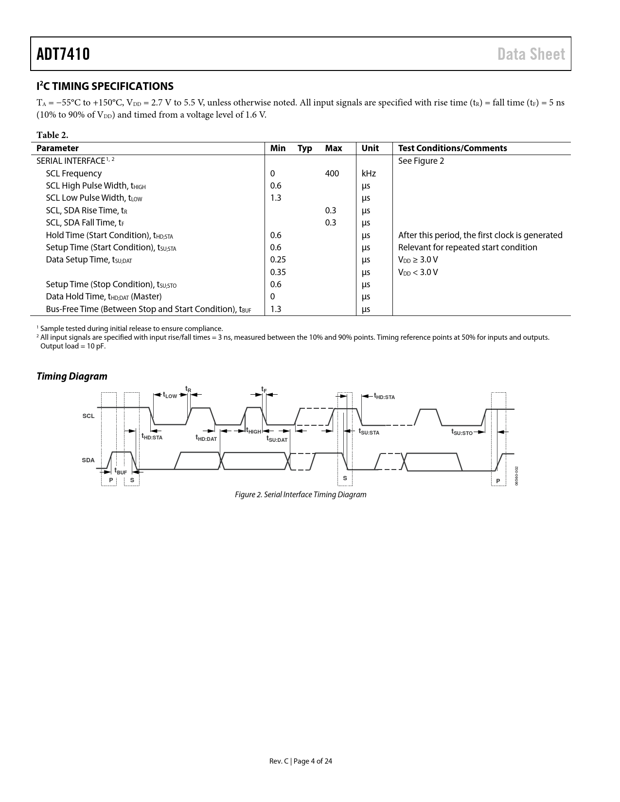 ADT7410 Data Sheet I2C TIMING SPECIFICATIONS