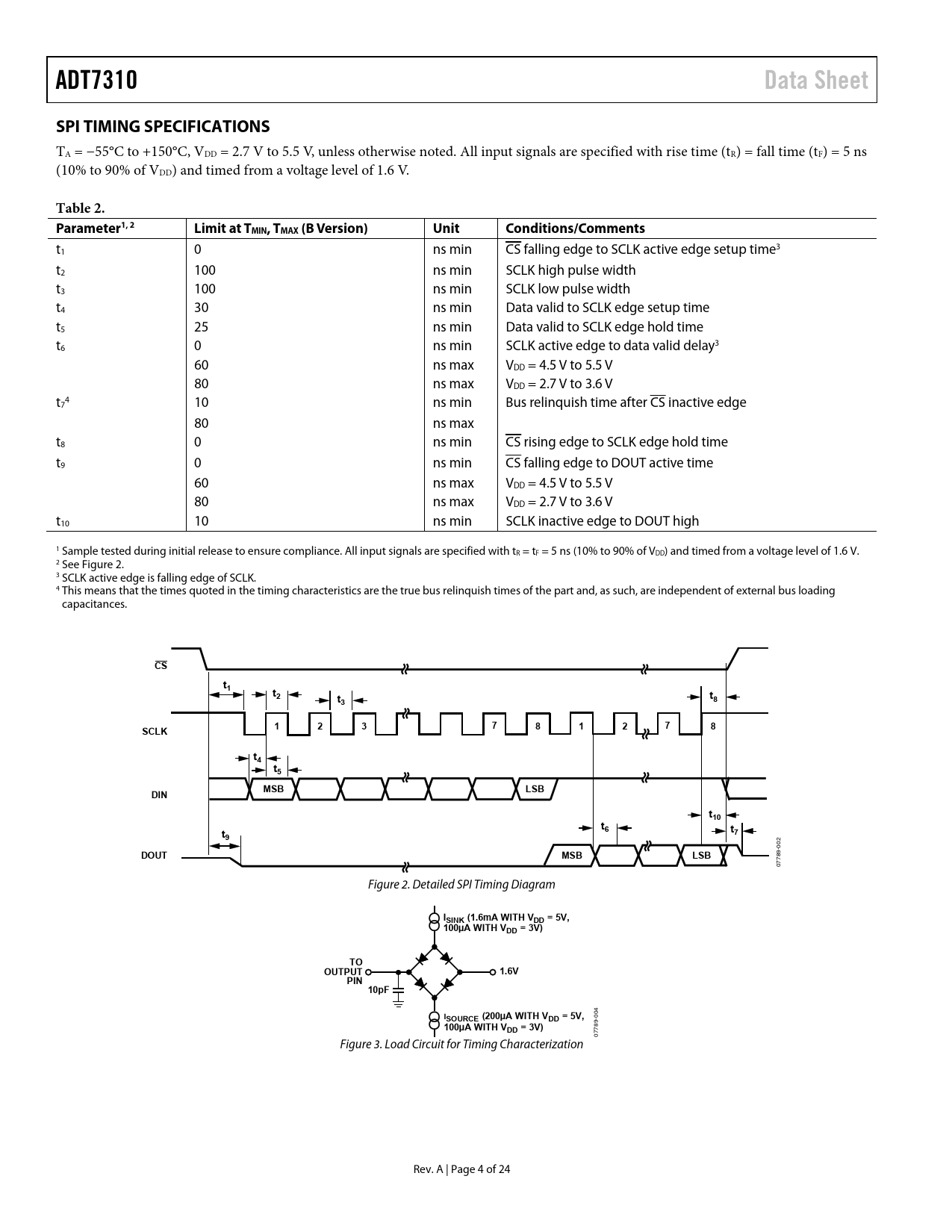 ADT7310 Data Sheet SPI TIMING SPECIFICATIONS