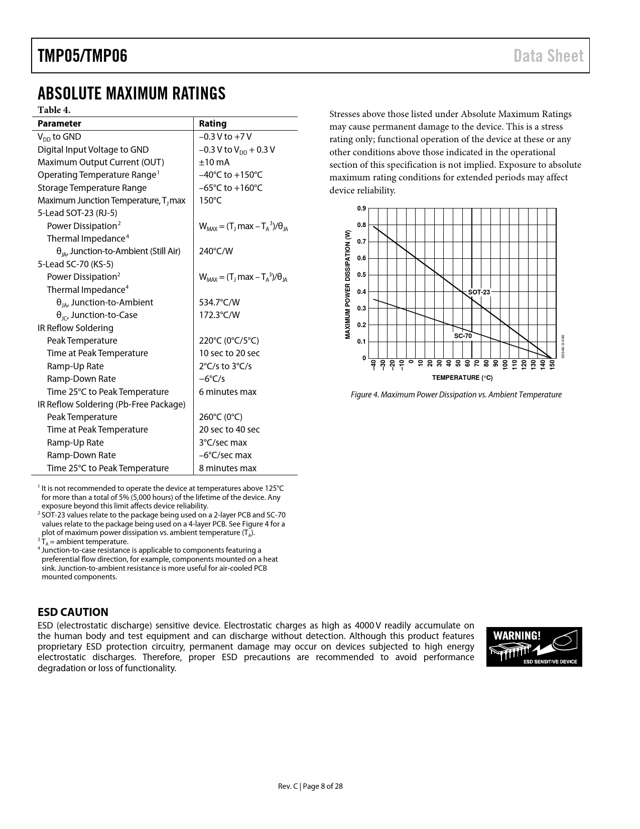 TMP05/TMP06 Data Sheet ABSOLUTE MAXIMUM RATINGS Table 4 Parameter Rating 0.9 0.8 0.7 0.6 0.5 0.4 SOT-23 0.3 0.2